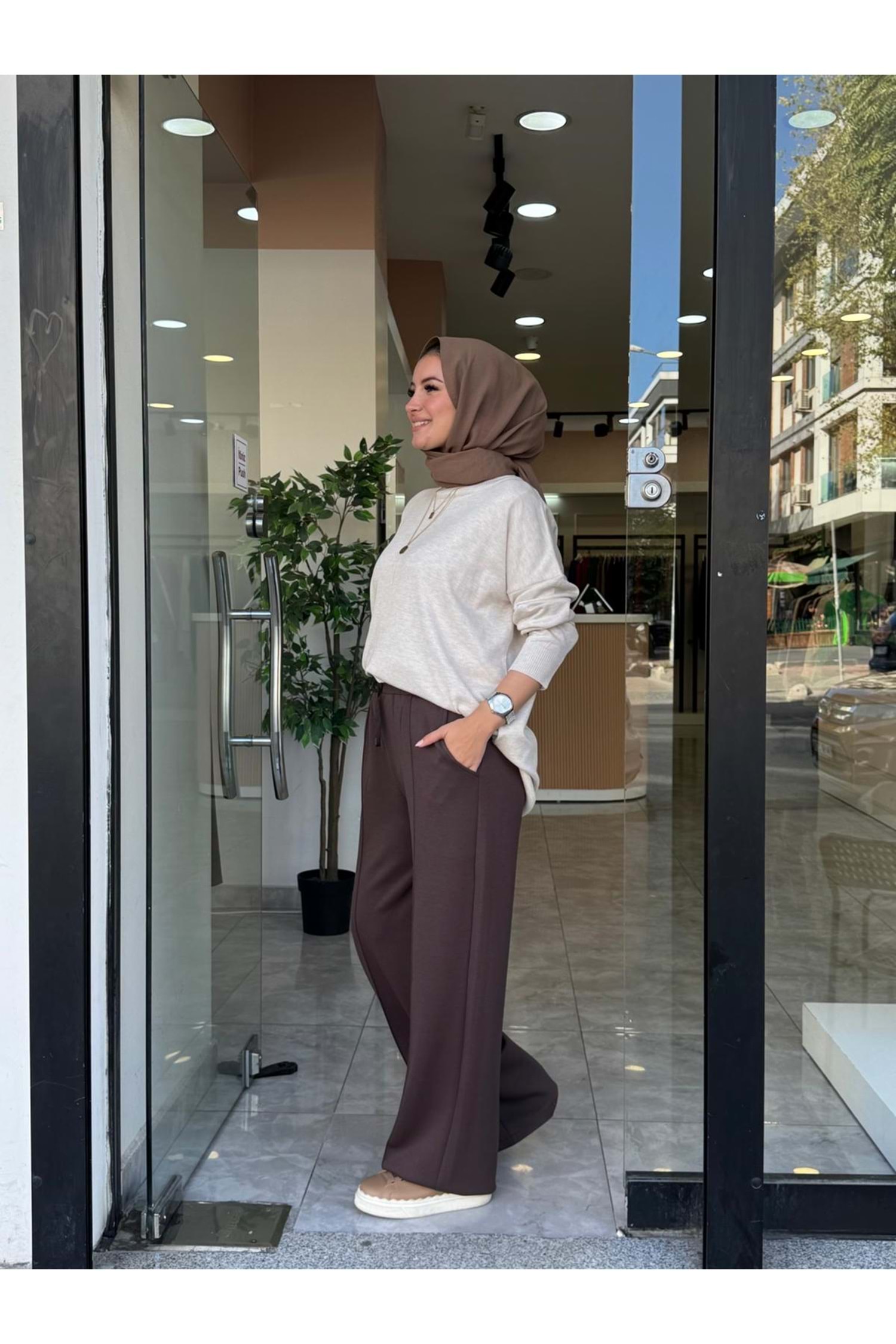 OYŞO ÇİMALI PANTOLON - KAHVERENGİ - L