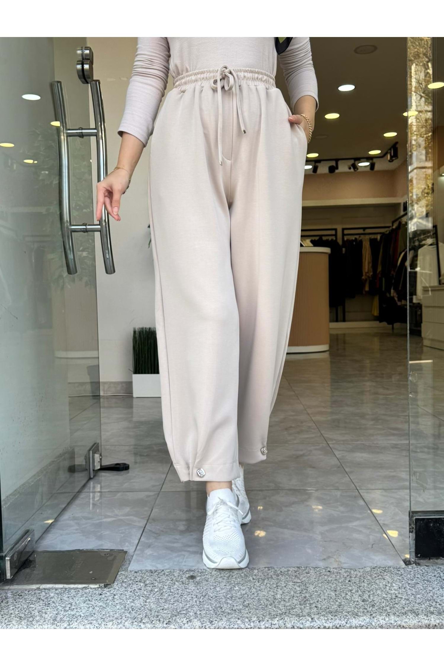 OYŞO PAÇA DÜĞMELİ PANTOLON - KREM - S-M