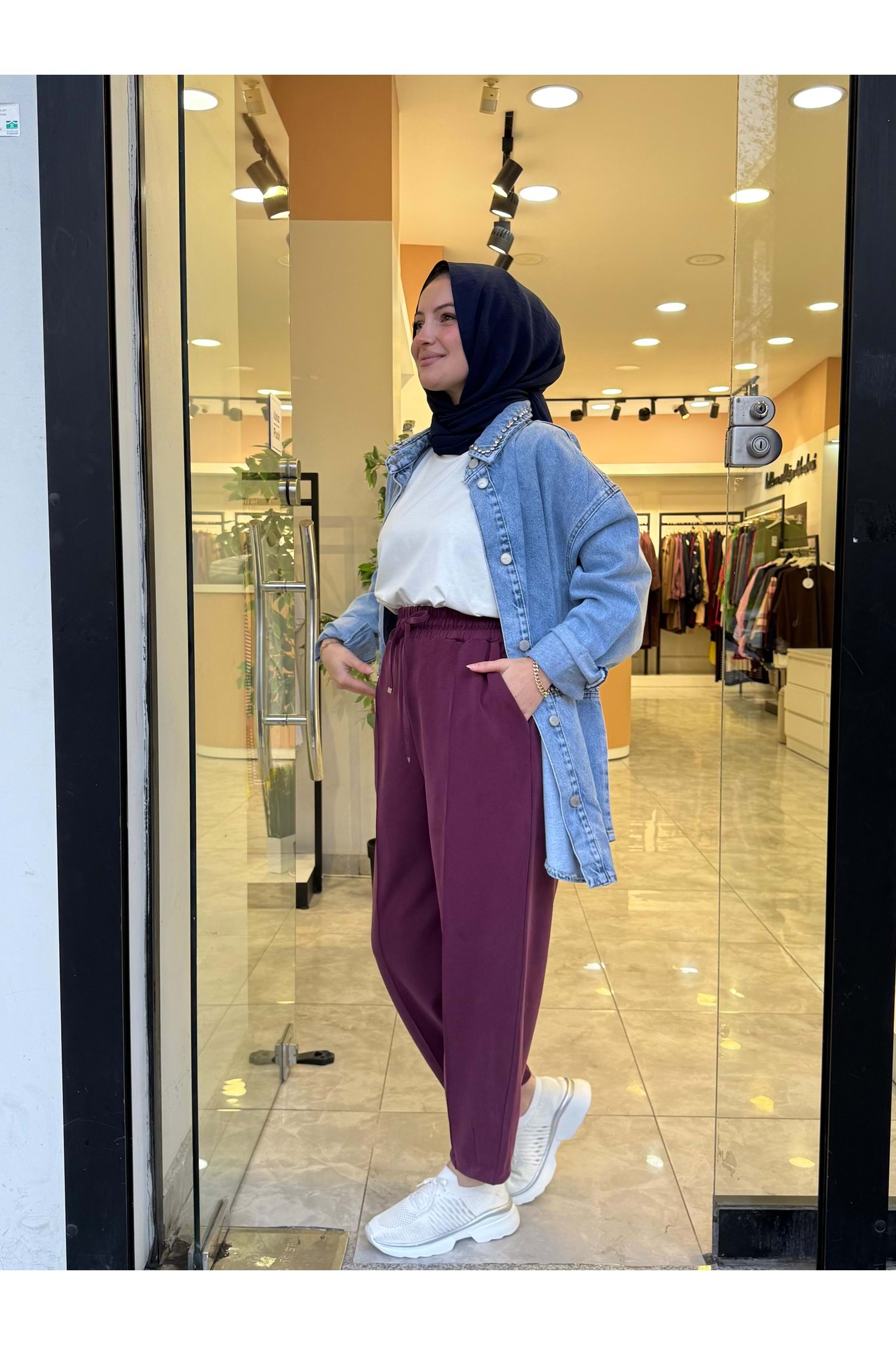 ŞALVAR OYŞO ÇİMALI PANTOLON - BORDO - L-XL