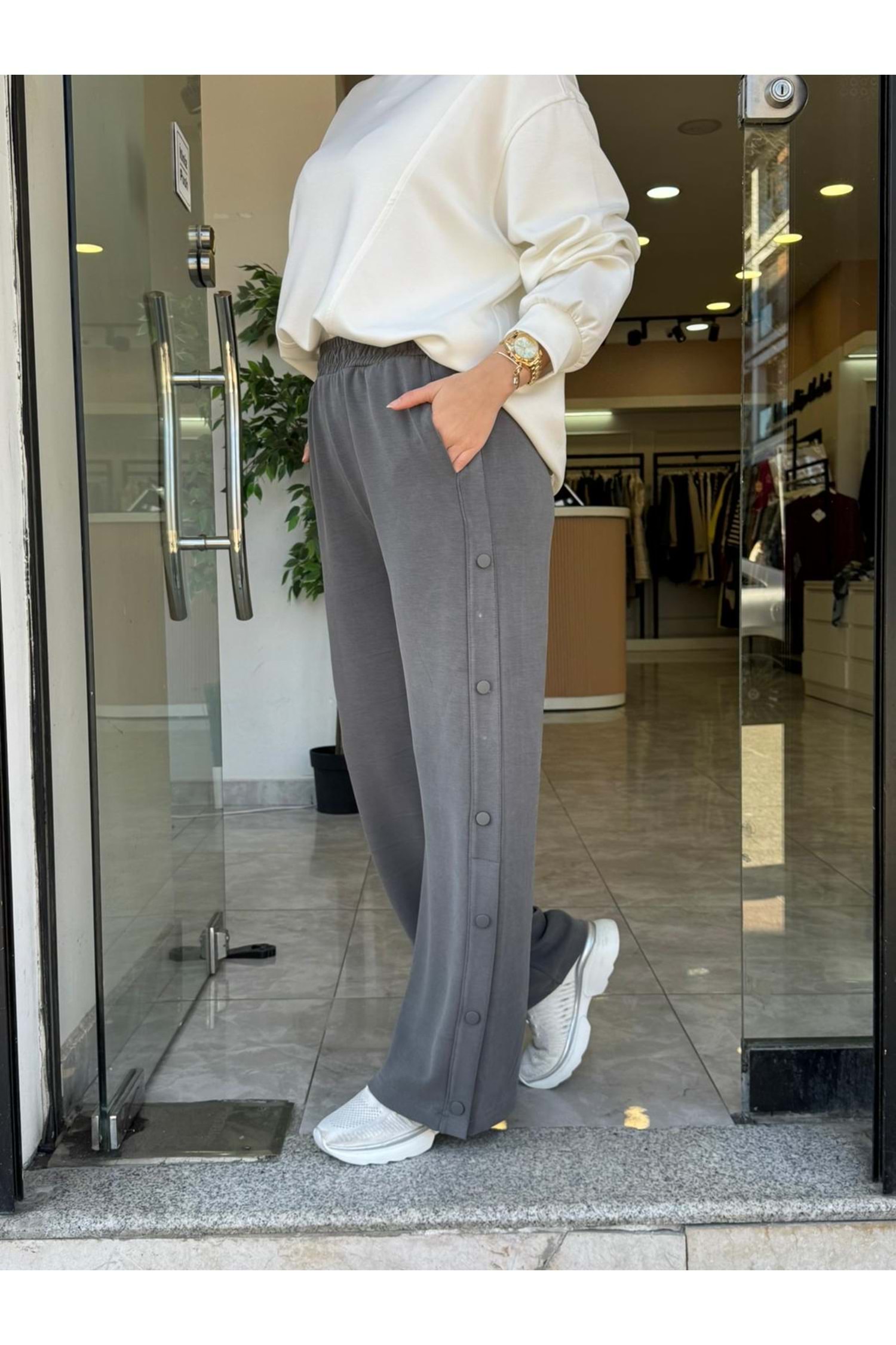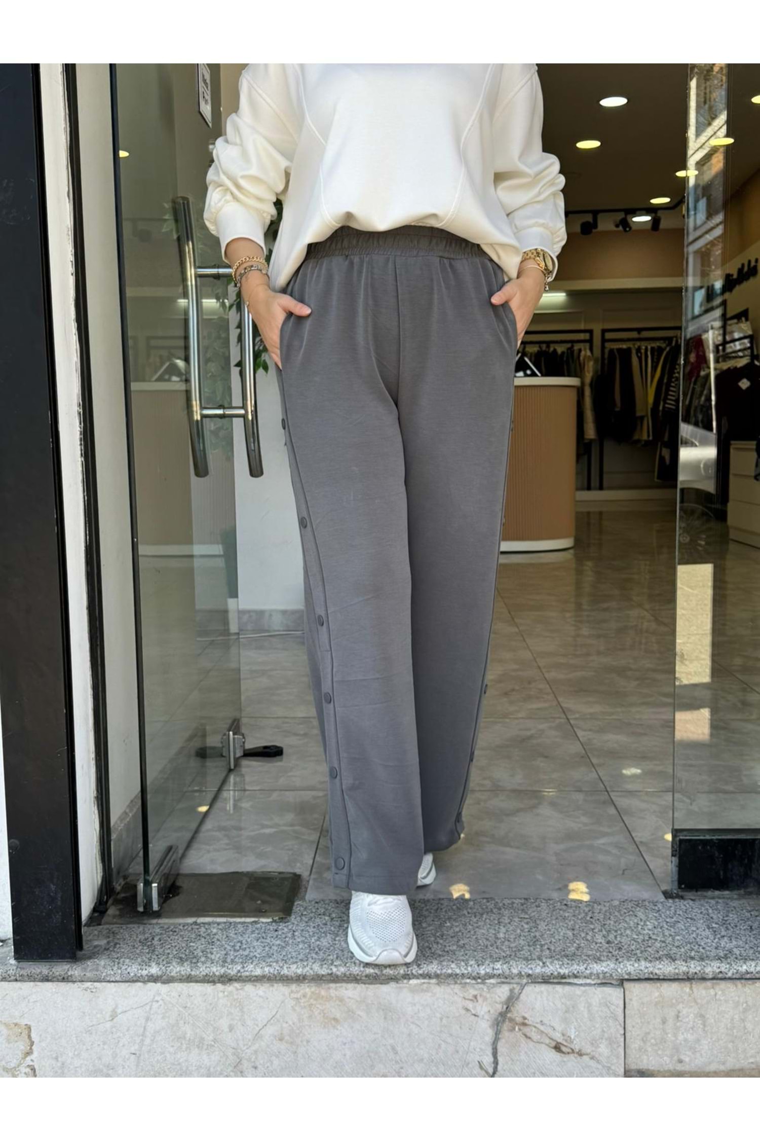 YAN DÜĞME OYŞO PANTOLON - GRİ - L-XL
