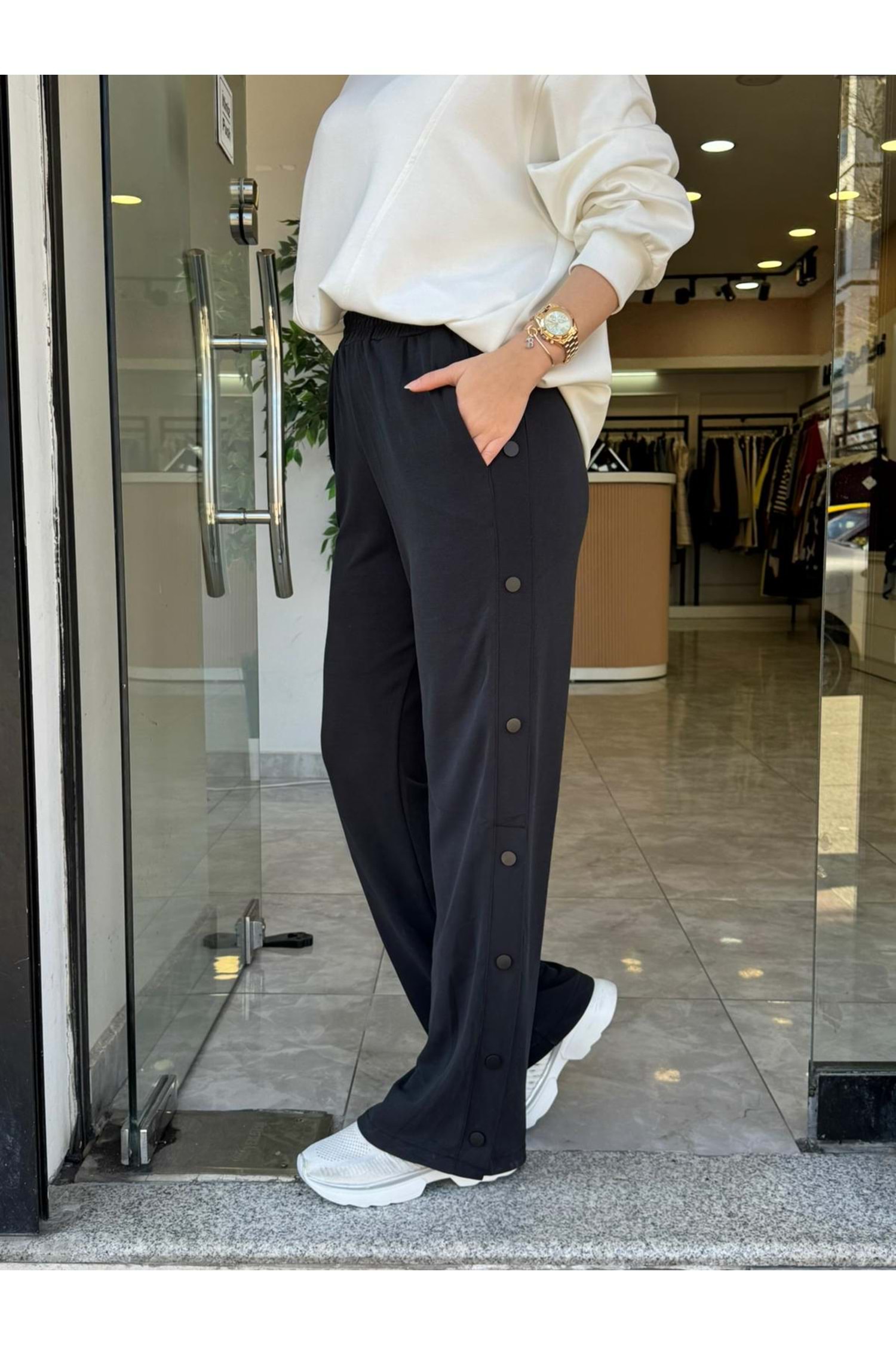 YAN DÜĞME OYŞO PANTOLON - SİYAH - L-XL