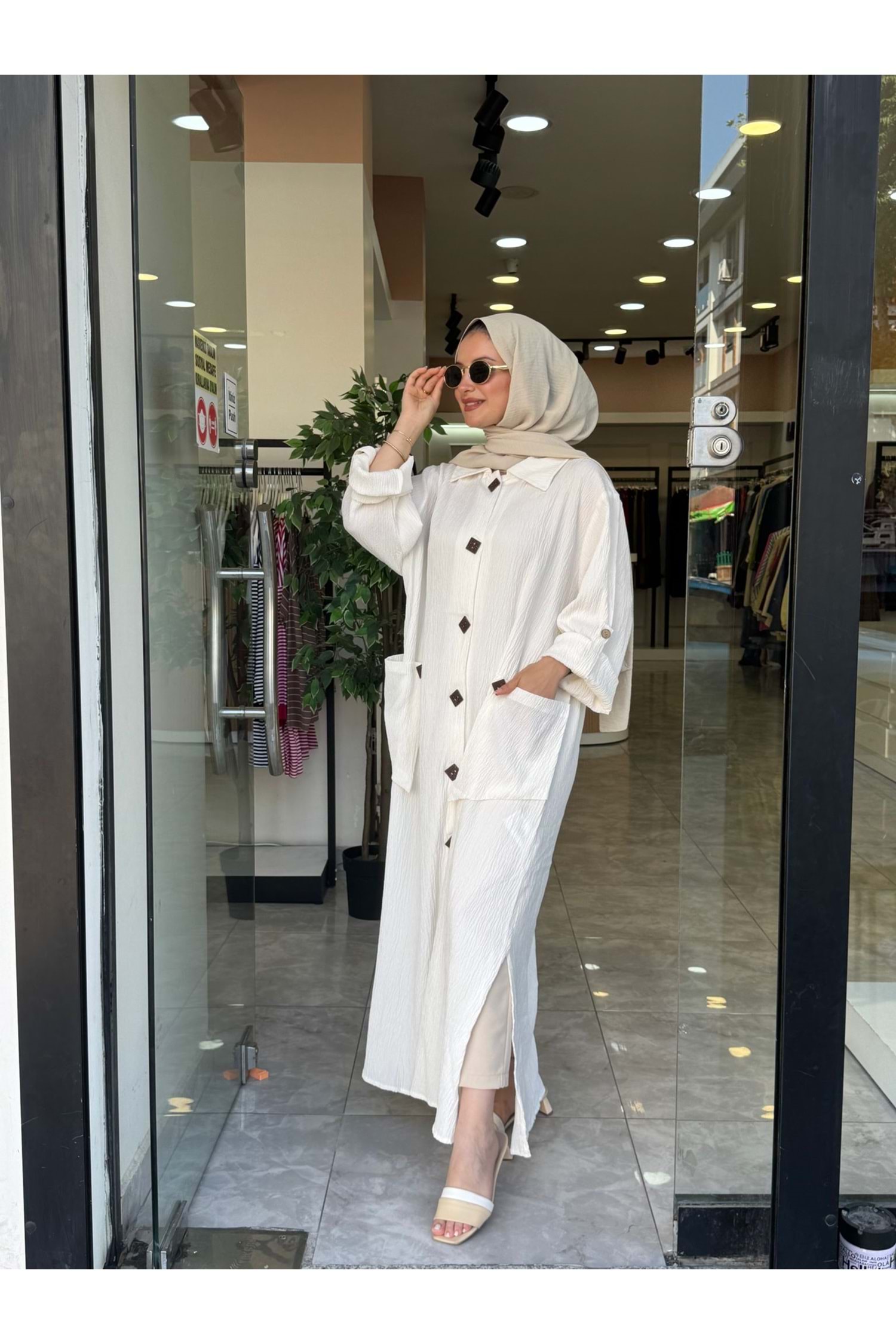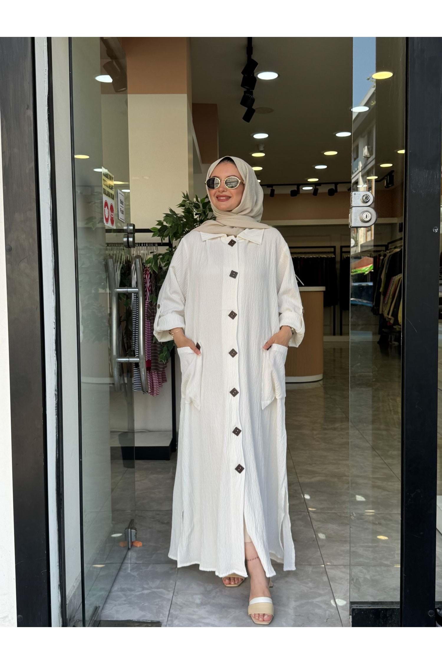 YASMİN UZUN KAP - BEYAZ - L-XL