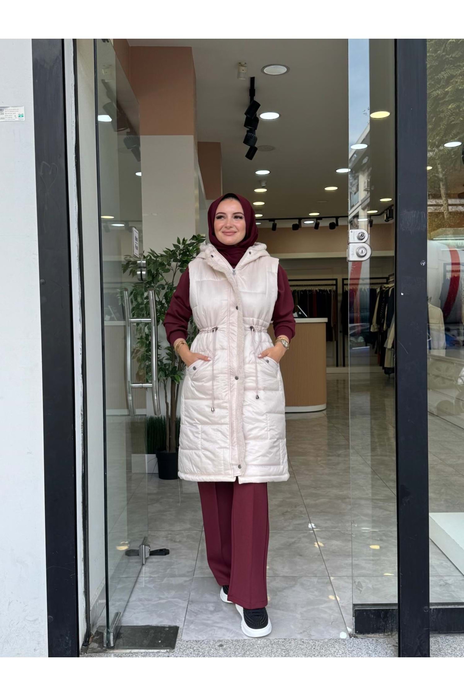 KOPÜŞONLU ARA BOY ŞİŞME YELEK - KREM - 40