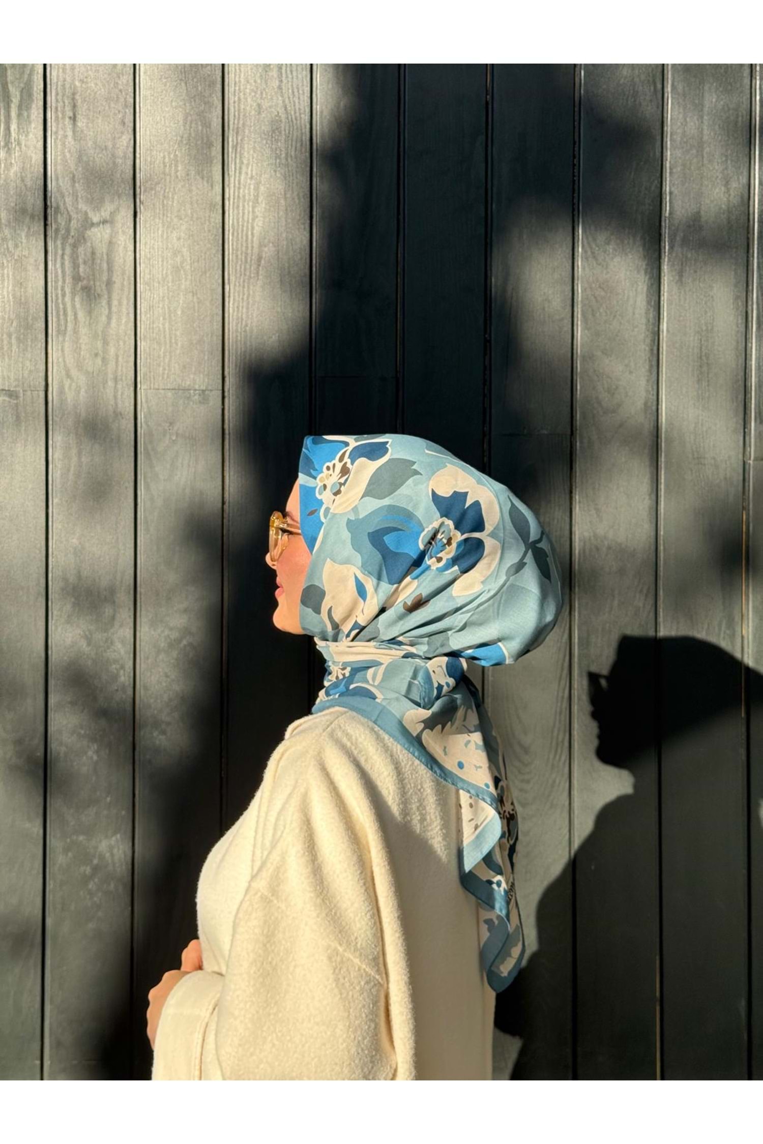 ÇİÇEK EŞARP - MAVİ - STD