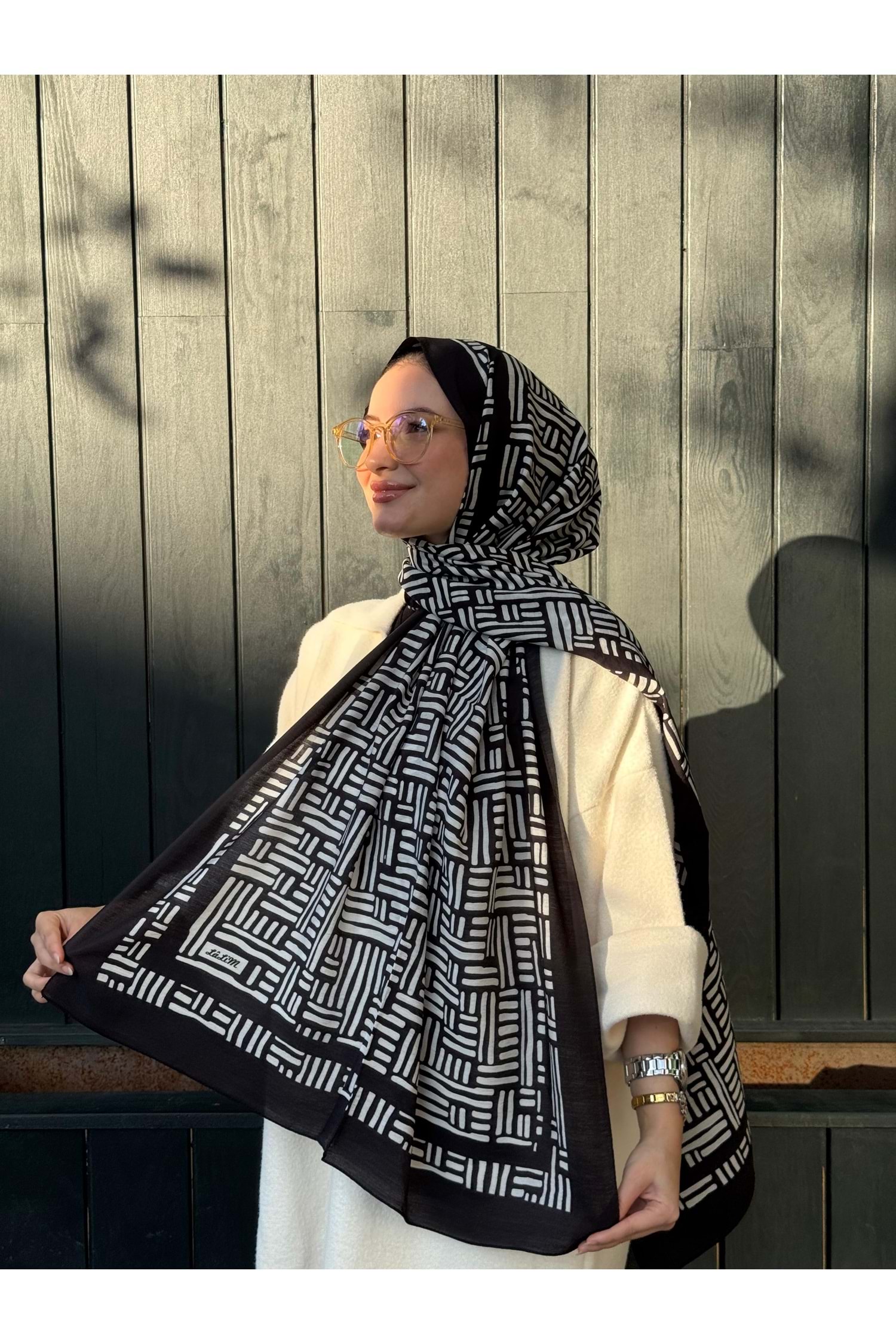 ÇİZGİ ŞAL - SİYAH BEYAZ - STD