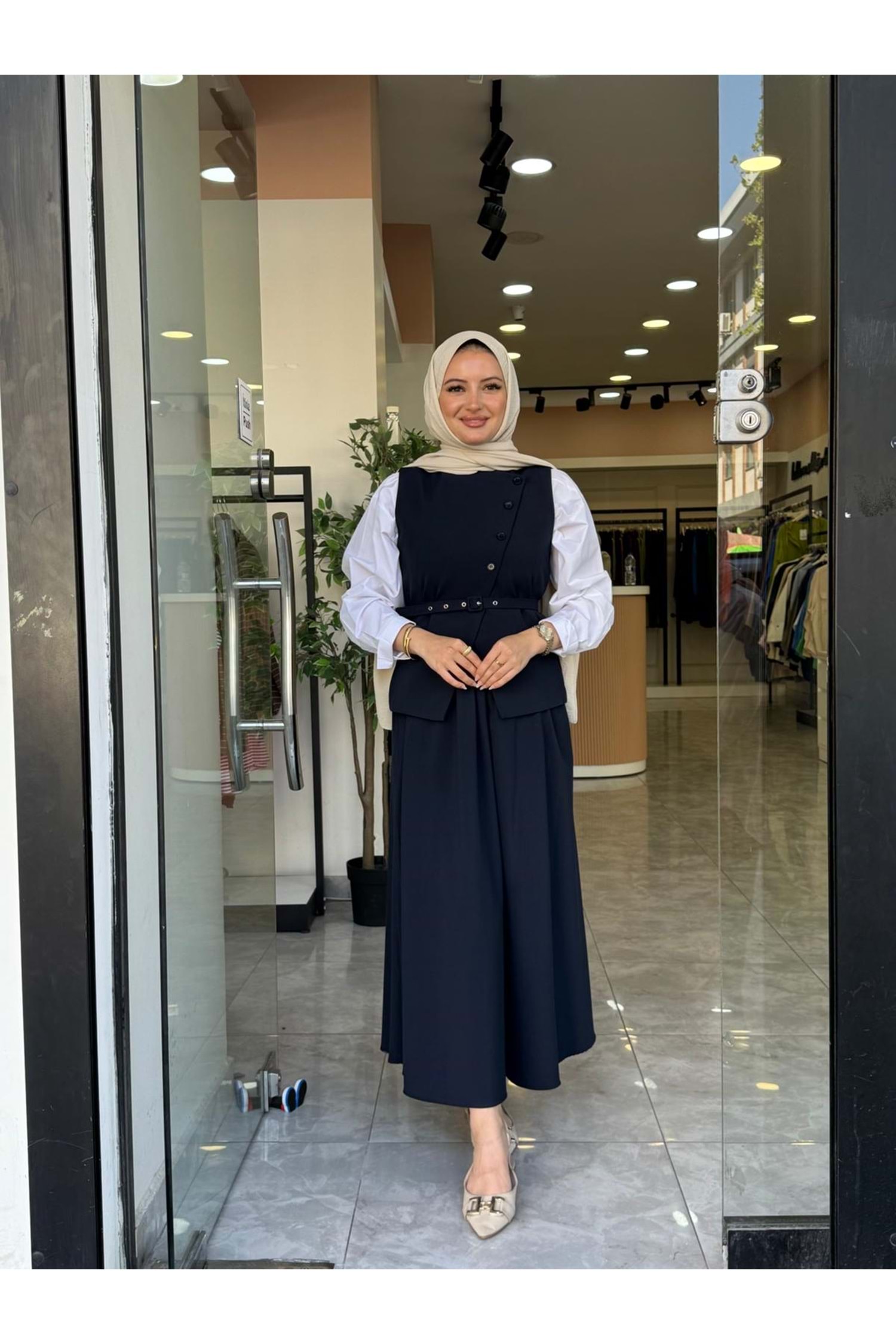 İKİLİ YELEK ETEKLİ TAKIM - LACİVERT - 1