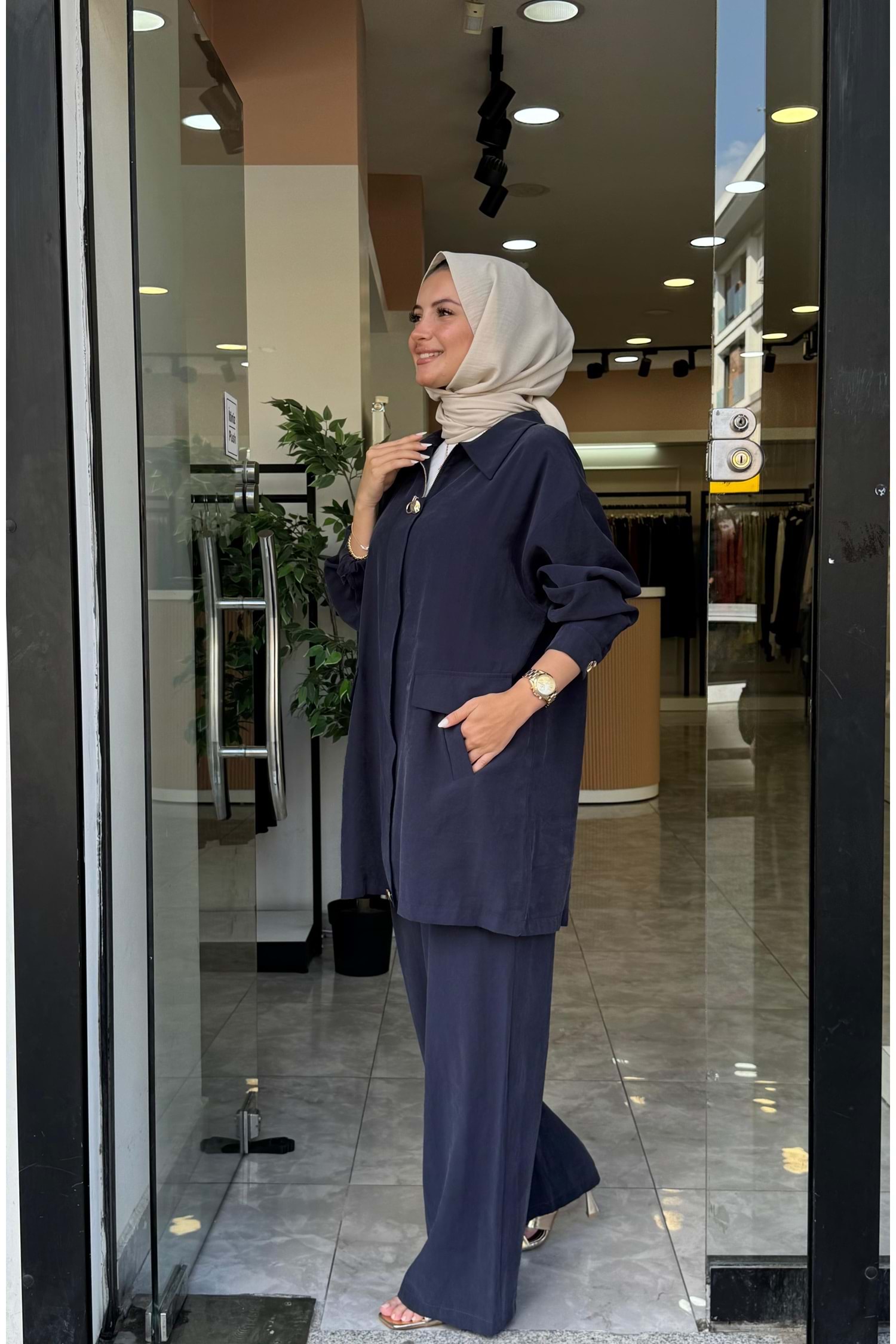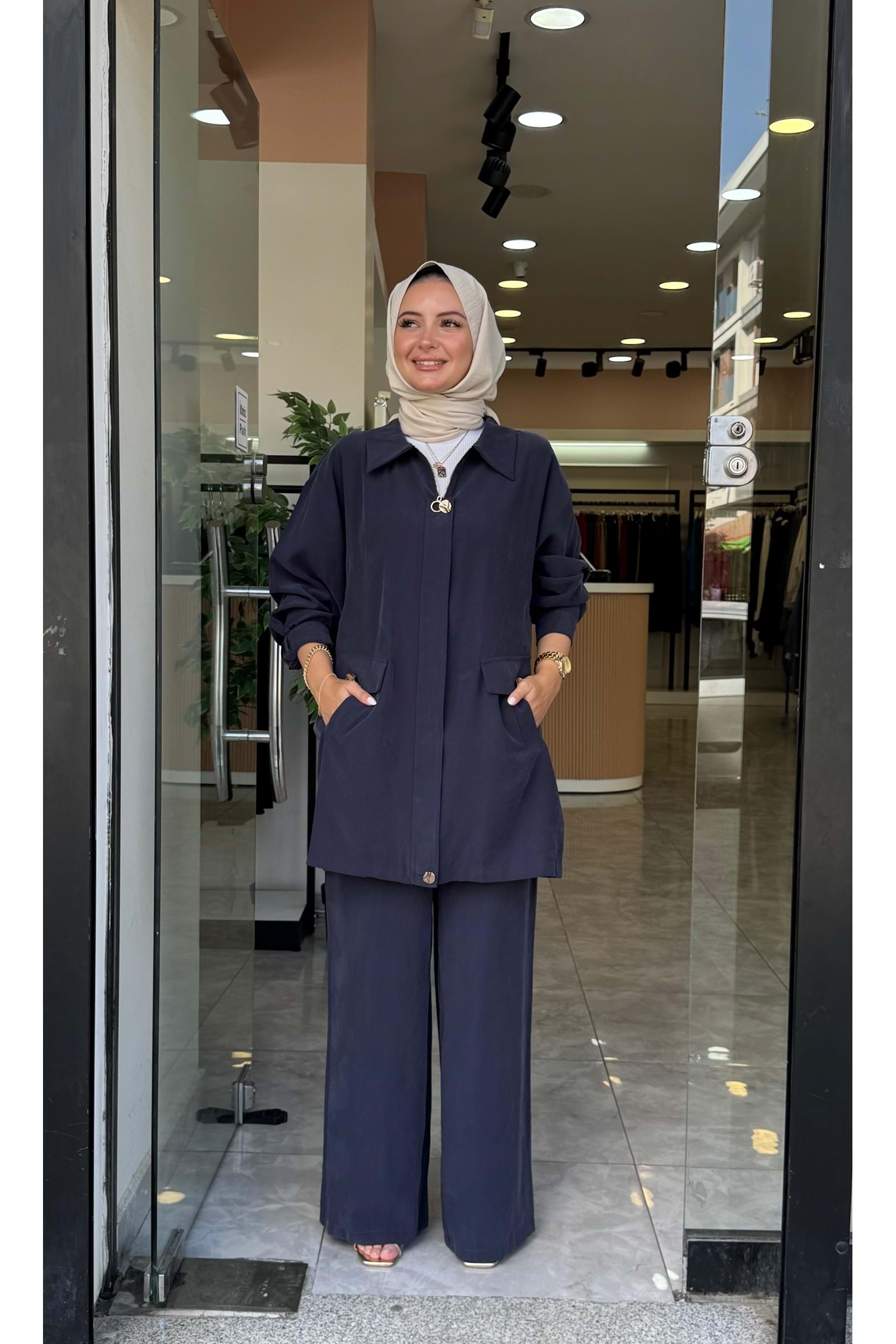 CUPRA DÜĞME CEPLİ TAKIM - LACİVERT - 1