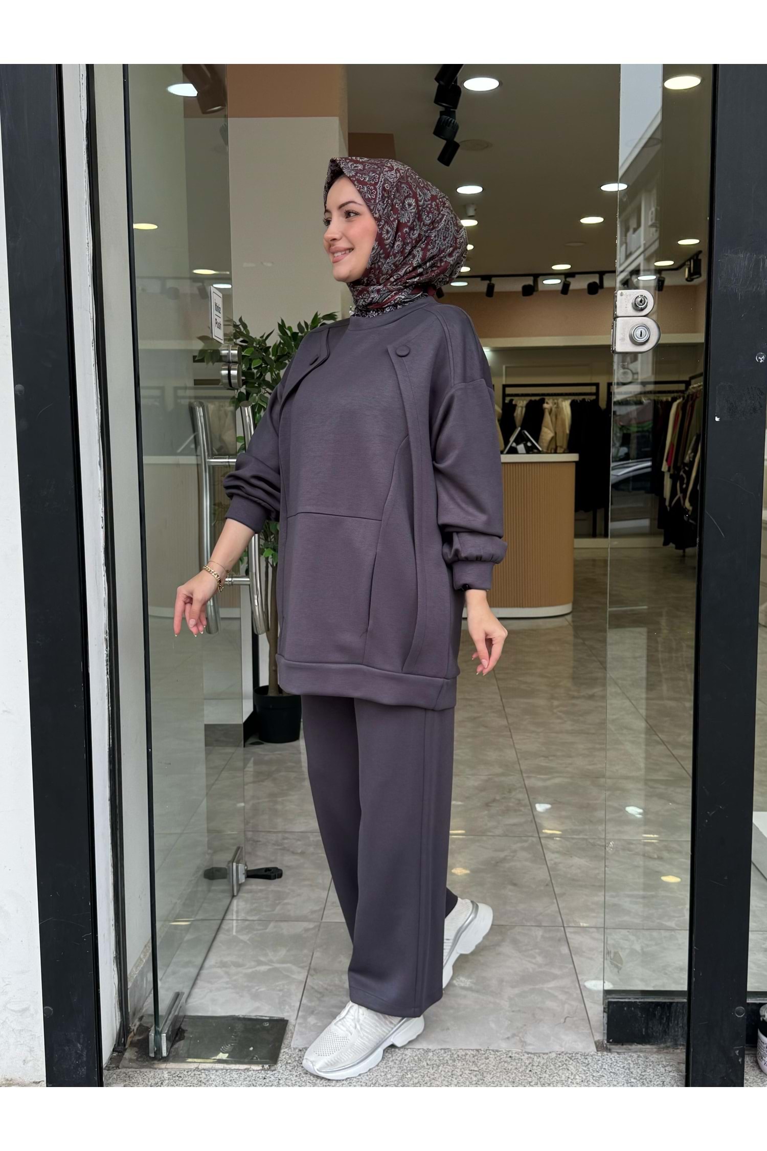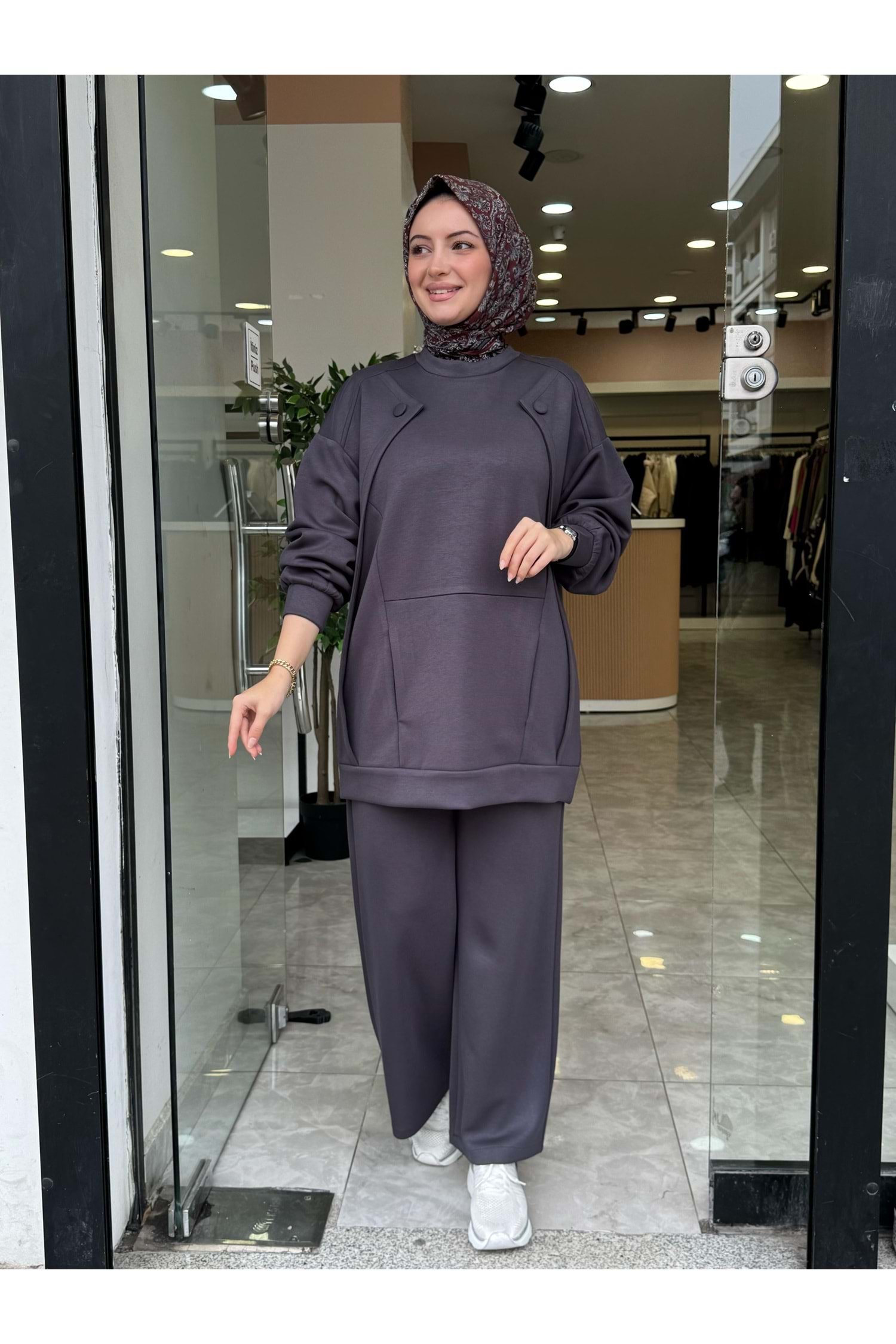 KAPLAMA DÜĞME TAKIM - ANTRASİT GRİ - S-M