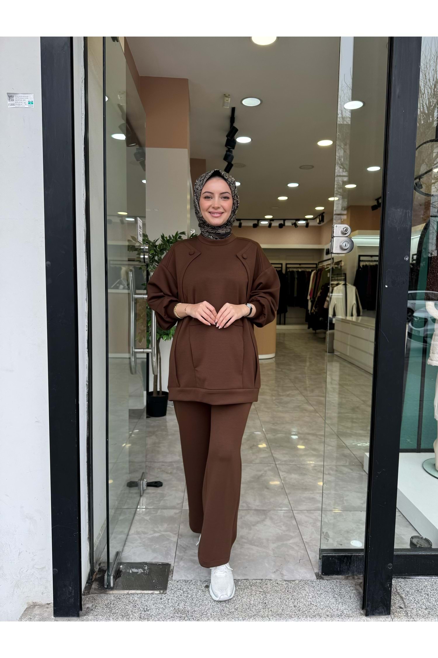 KAPLAMA DÜĞME TAKIM - KAHVERENGİ - S-M