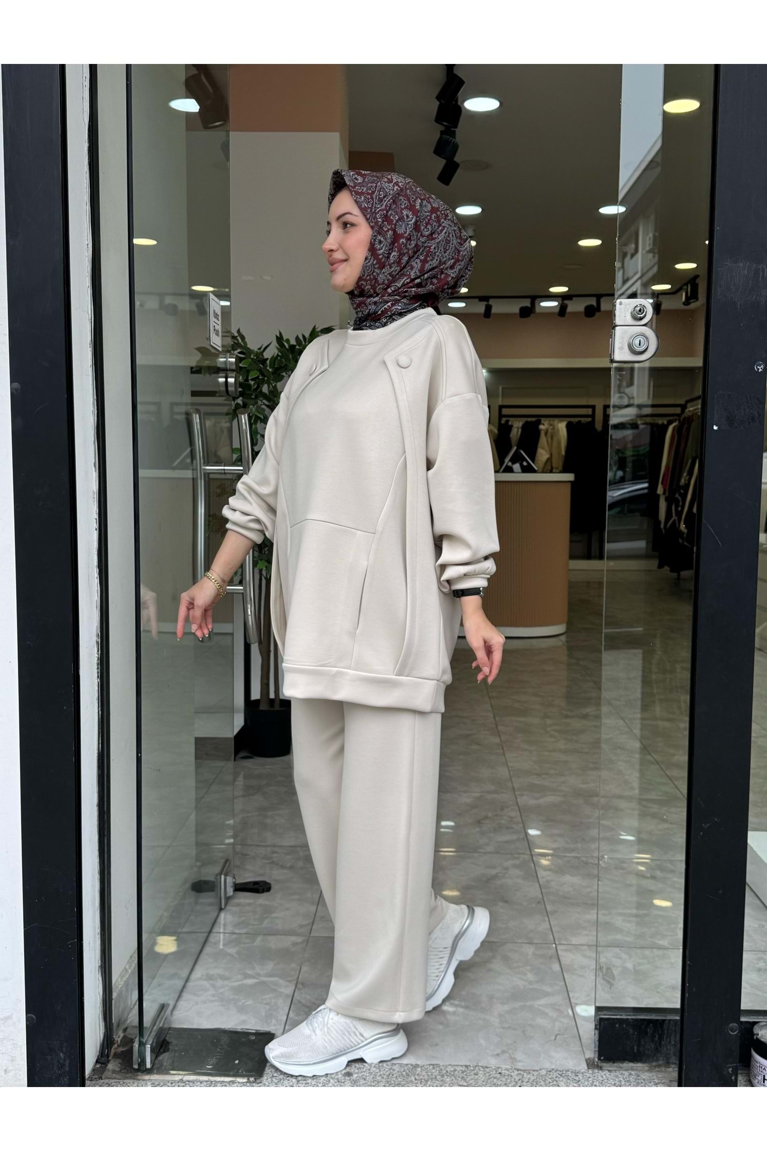 KAPLAMA DÜĞME TAKIM - KREM - S-M