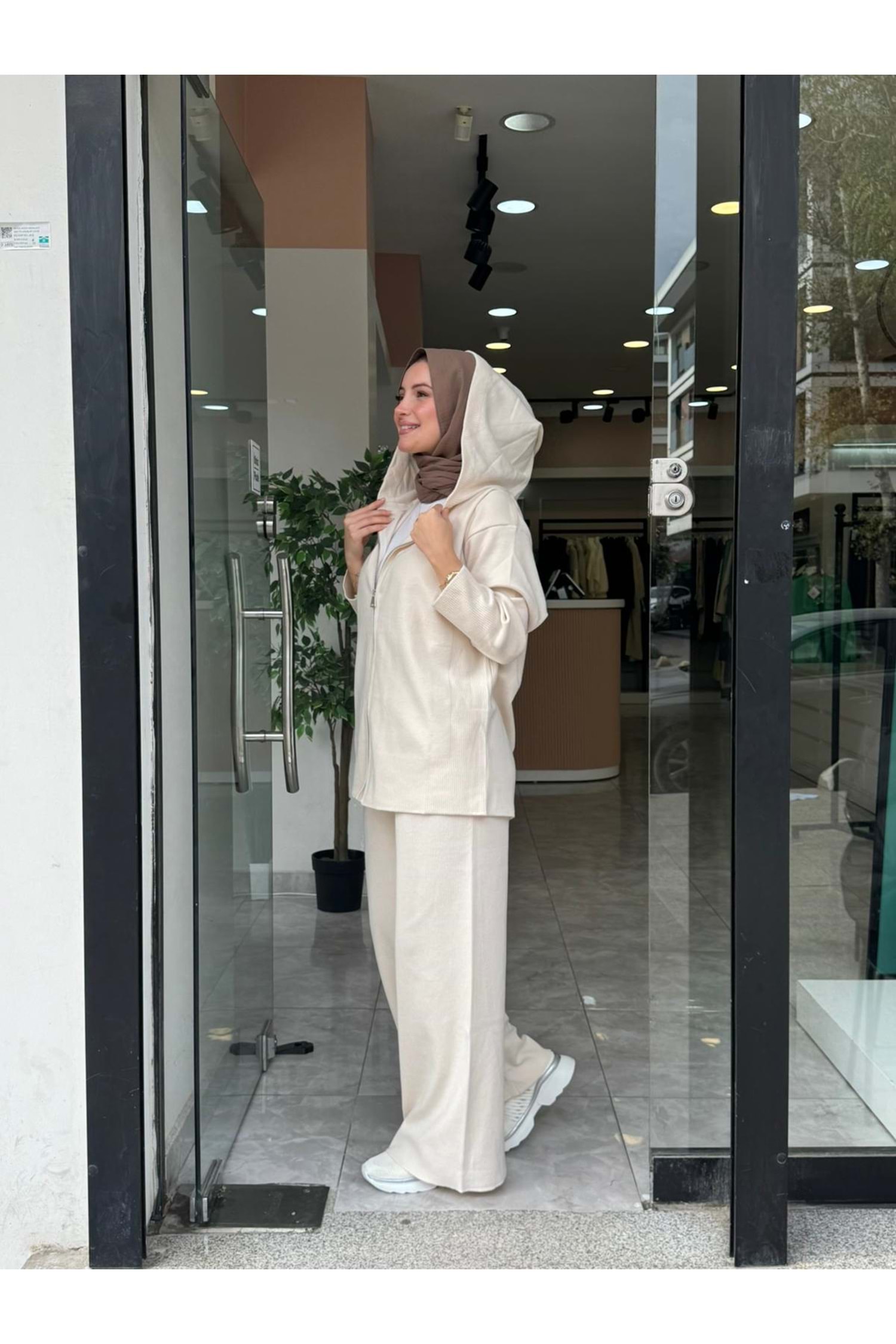 MERSERİZ FERMUARLI TAKIM - EKRU - STD