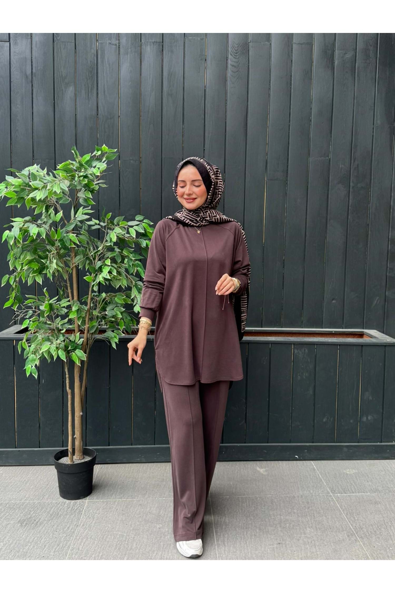 PİKE ÇİMALI TAKIM - KAHVERENGİ - S-M
