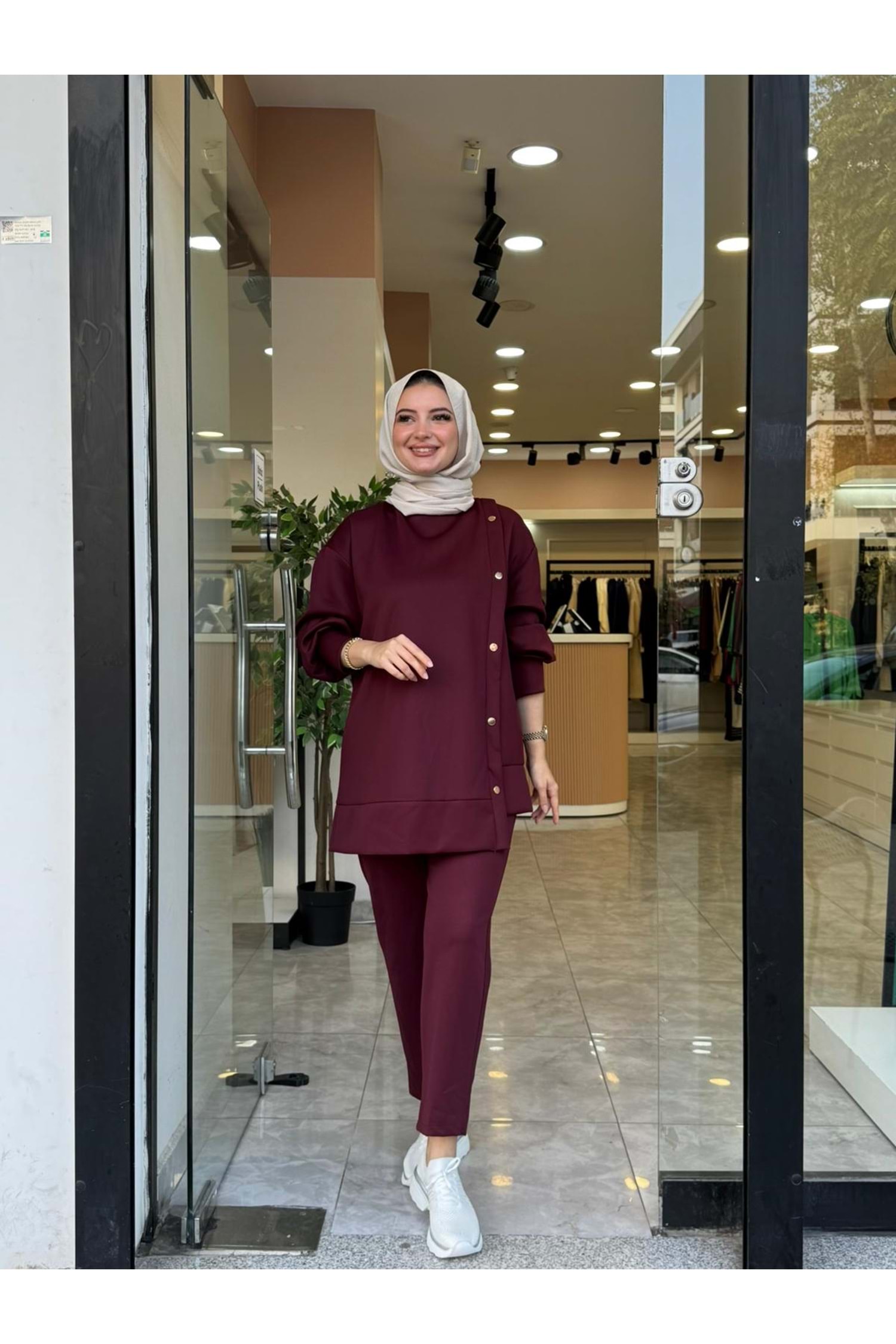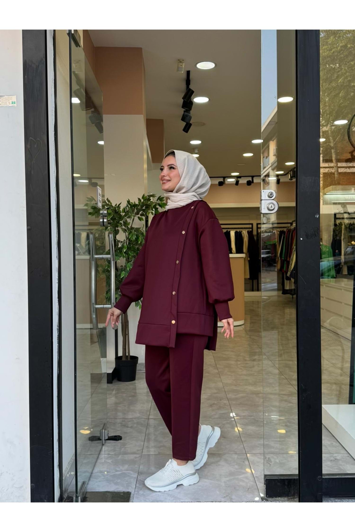 SCUBA DÜĞMELİ TAKIM - BORDO - 1