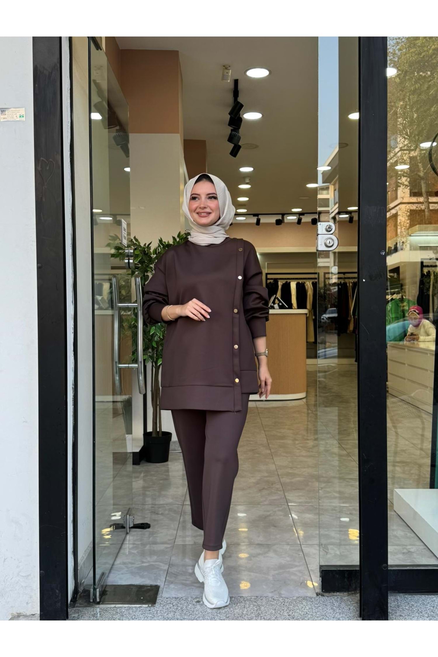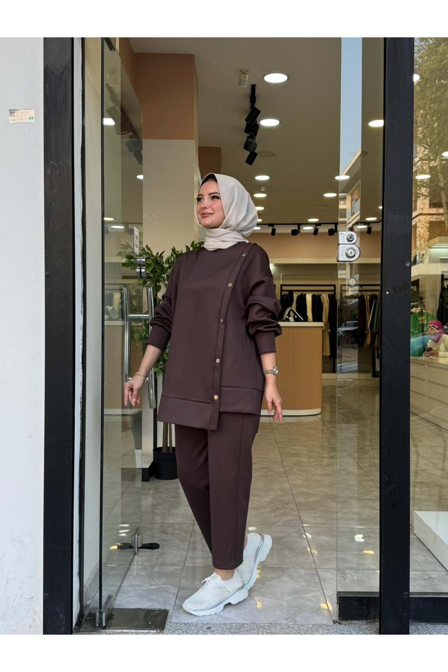 SCUBA DÜĞMELİ TAKIM - KAHVERENGİ - 2