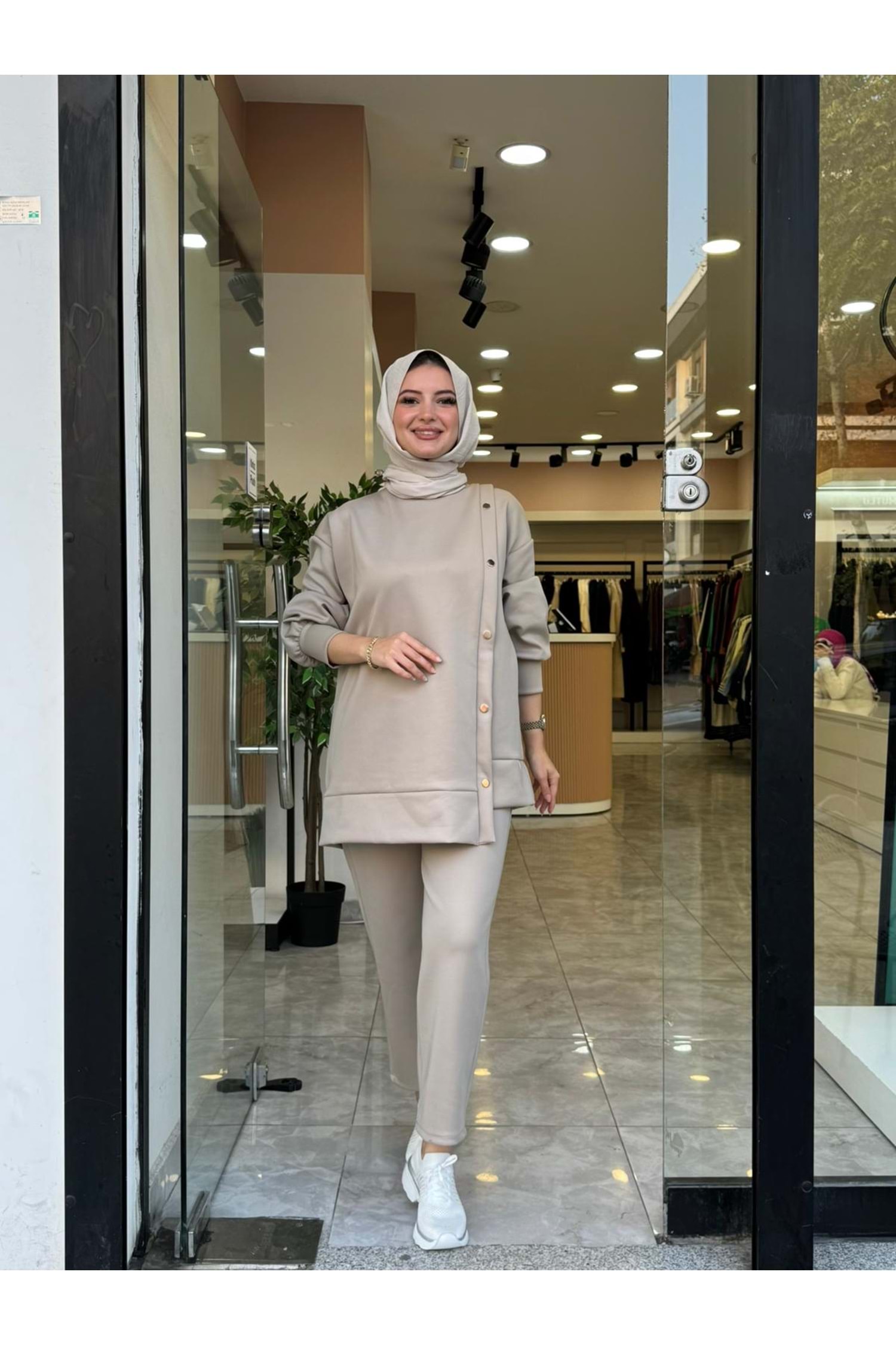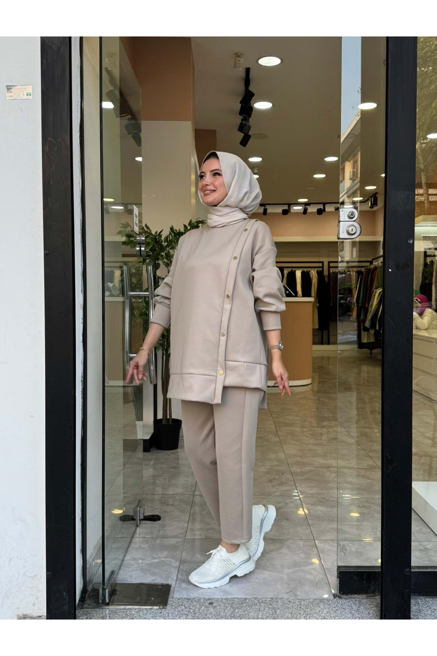 SCUBA DÜĞMELİ TAKIM - KREM - 1