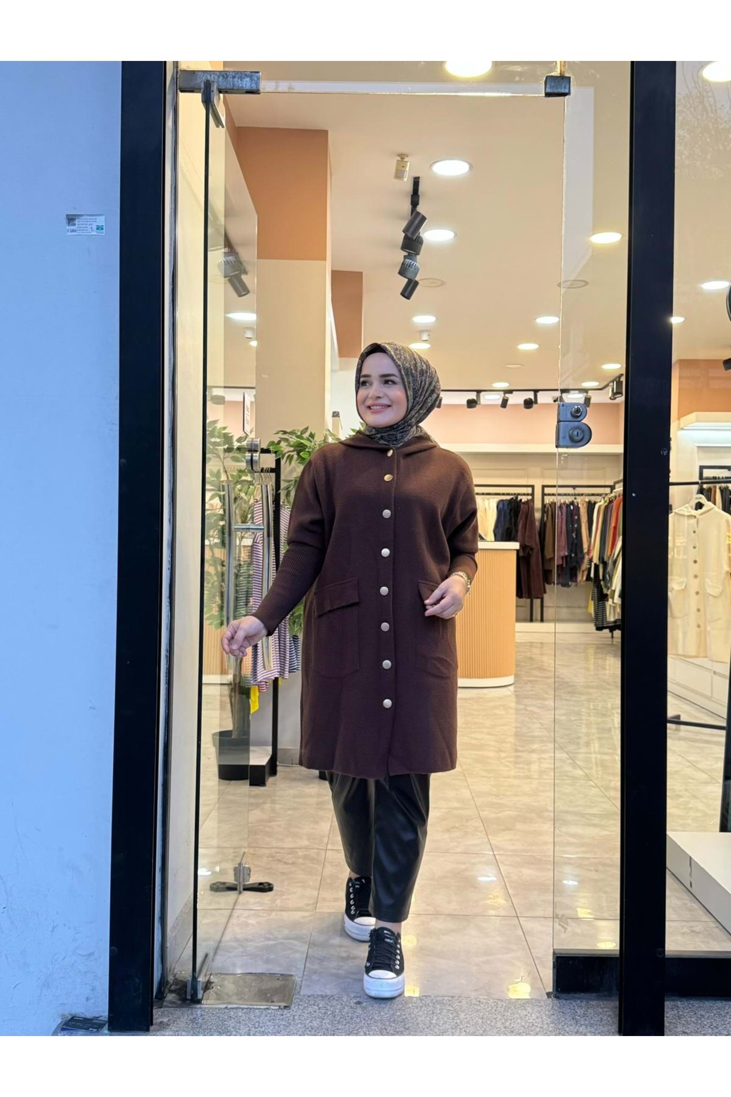 ANGORA DÜĞMELİ UZUN HIRKA - ACI KAHVE - STD