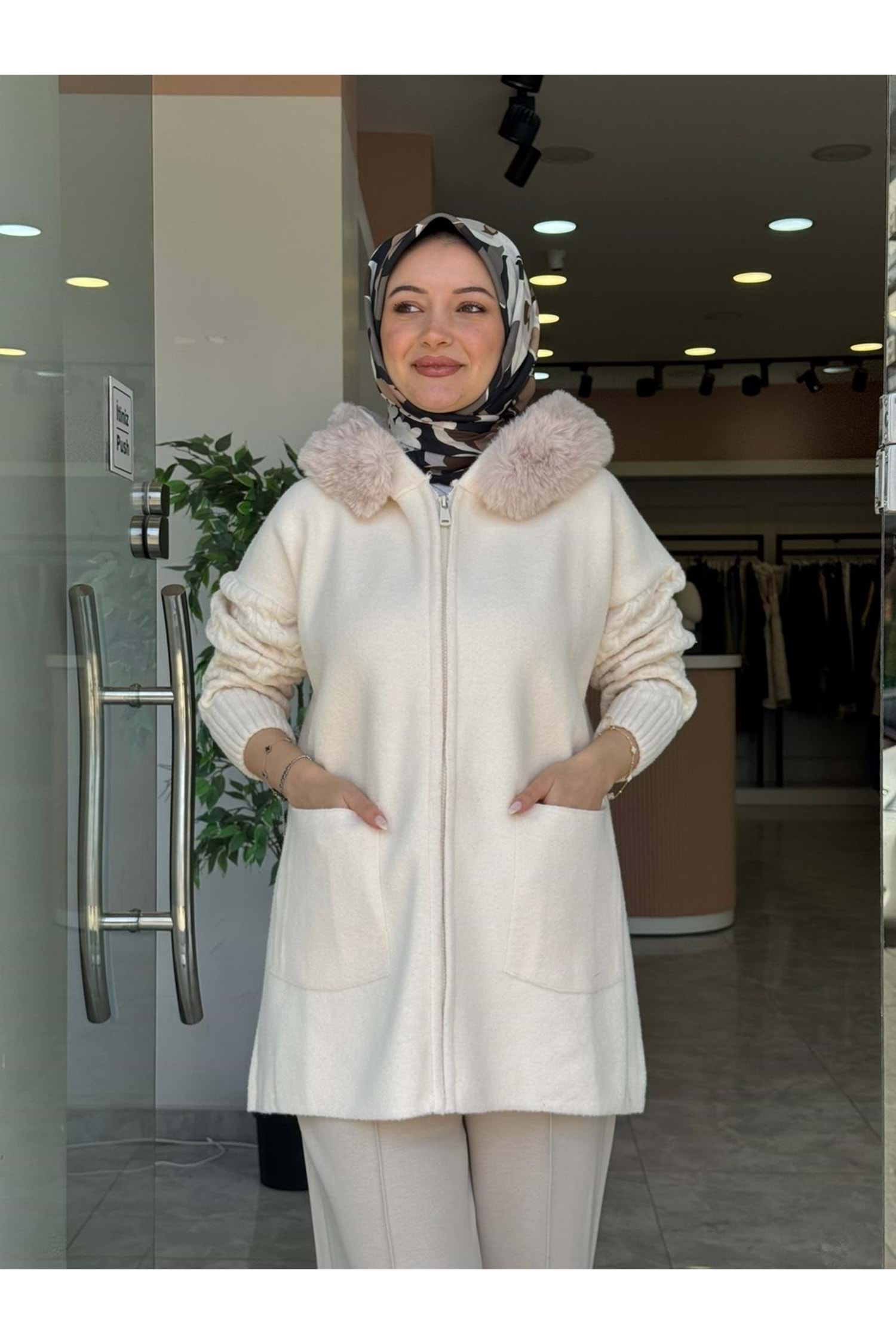 KAPÜŞONLU KÜRK HIRKA - EKRU - STD