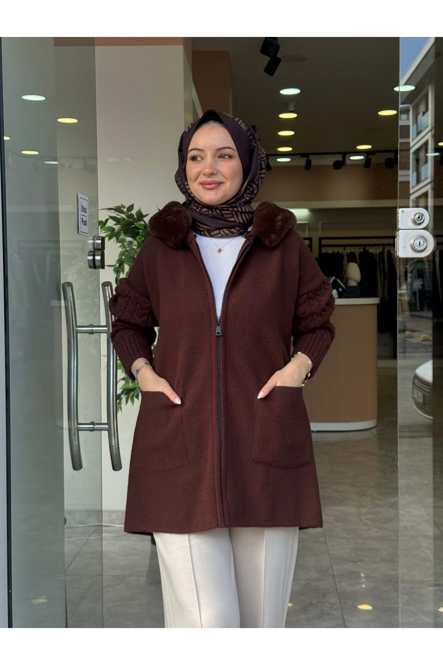 KAPÜŞONLU KÜRK HIRKA - KAHVERENGİ - STD