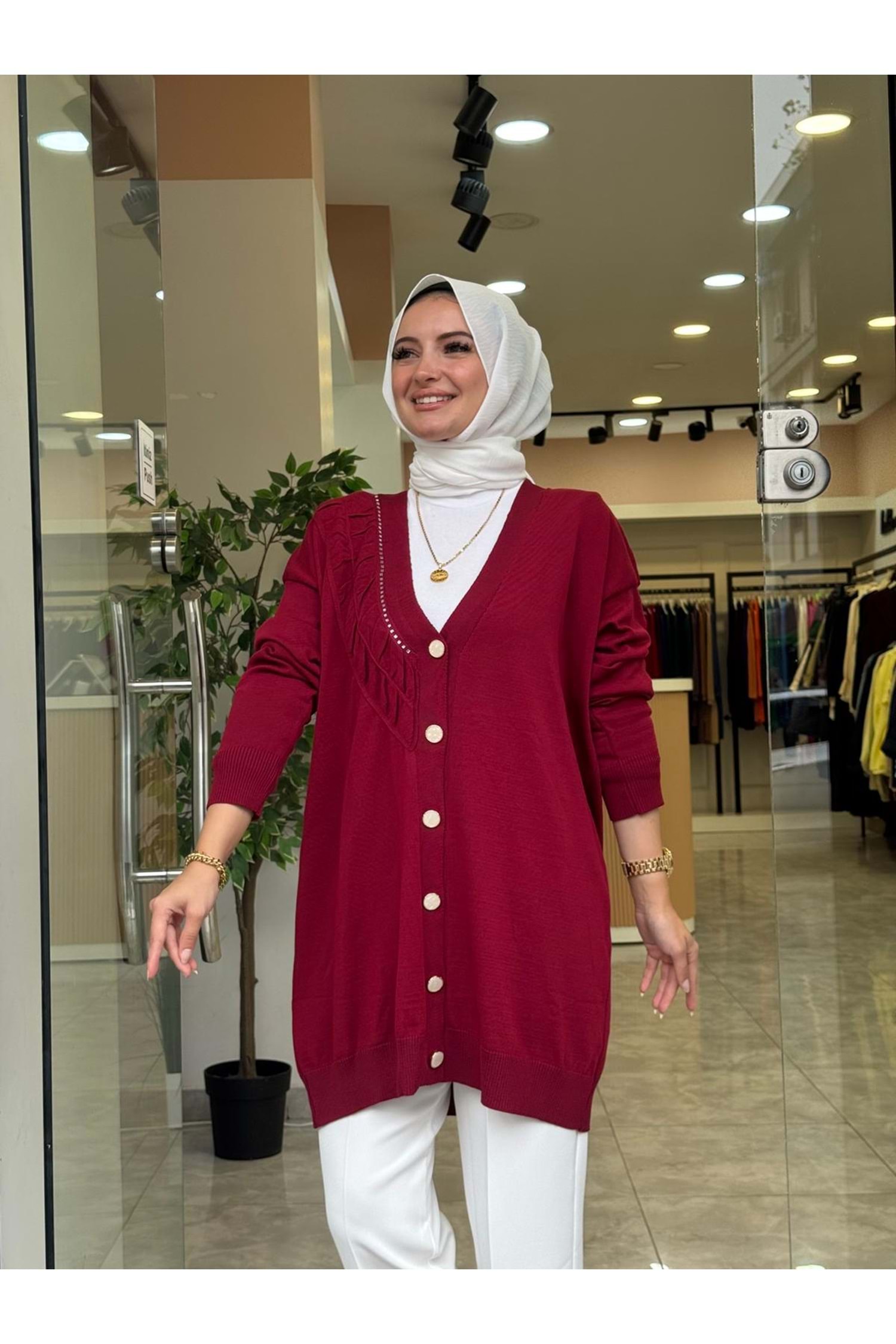 MERSERİZE BÜZGÜ DÜĞMELİ HIRKA - BORDO - STD