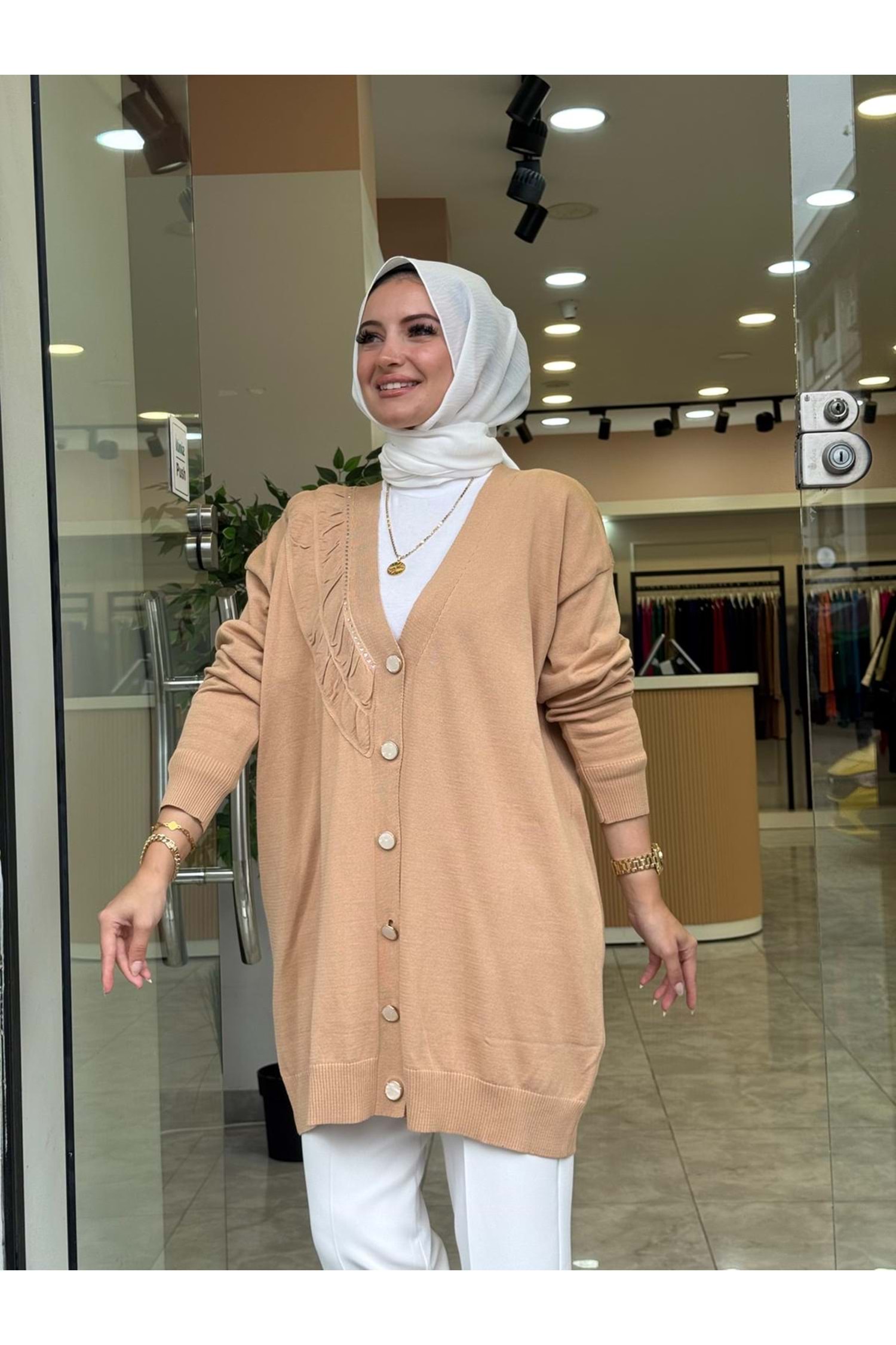 MERSERİZE BÜZGÜ DÜĞMELİ HIRKA - CAMEL - STD