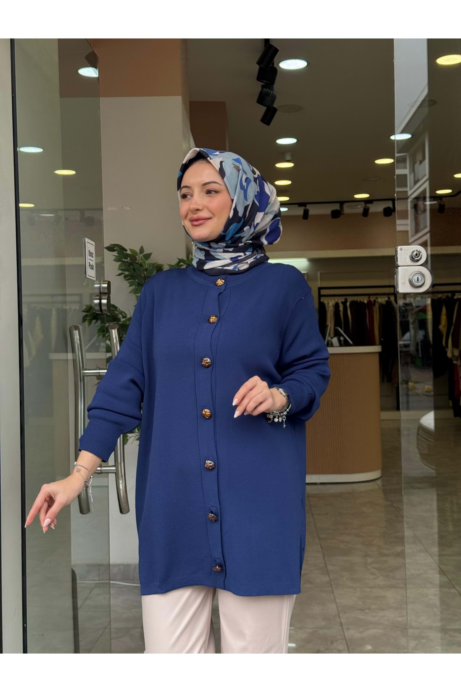 MERSERİZE DÜĞMELİ HIRKA - MAVİ - 1
