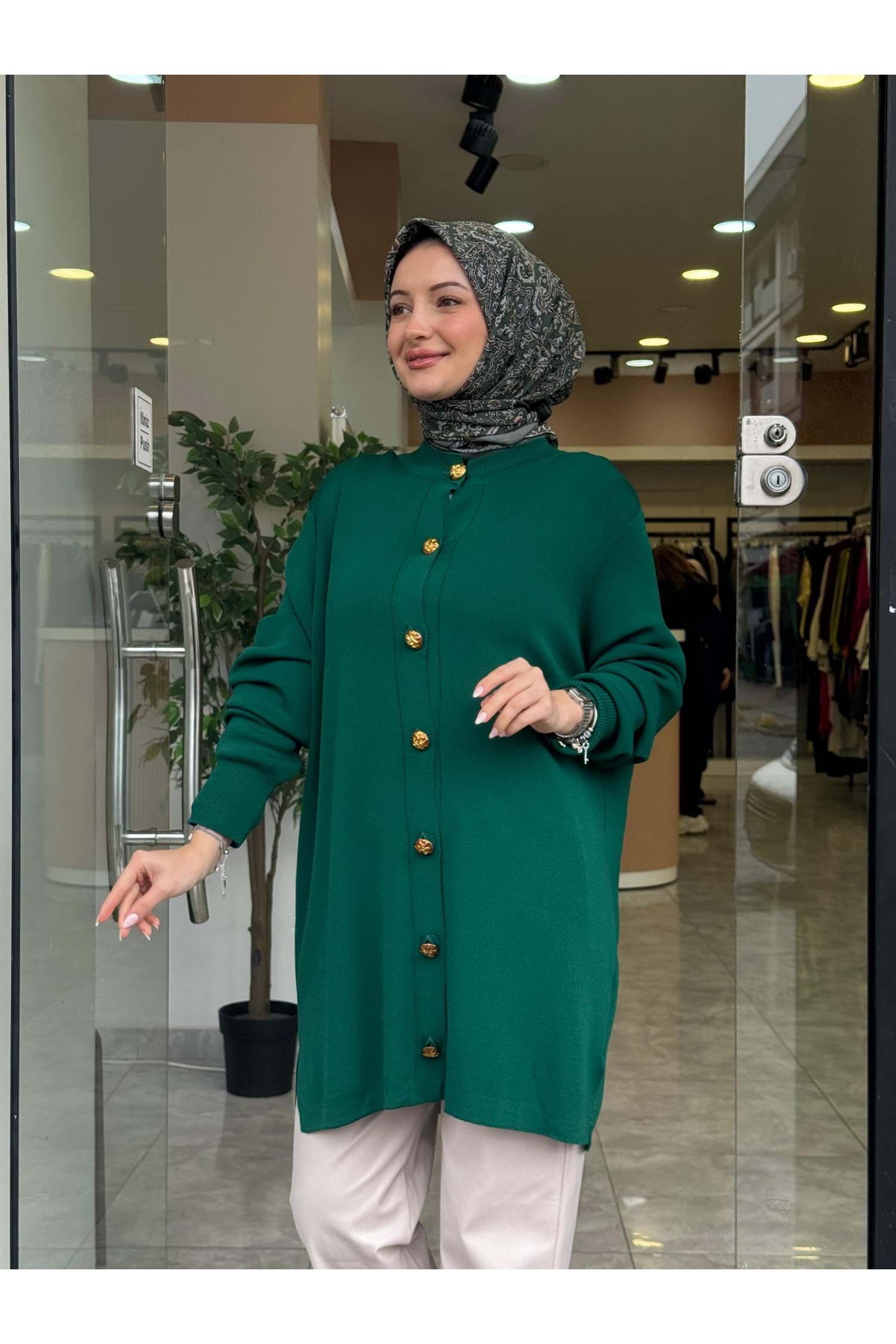 MERSERİZE DÜĞMELİ HIRKA - YEŞİL - 1