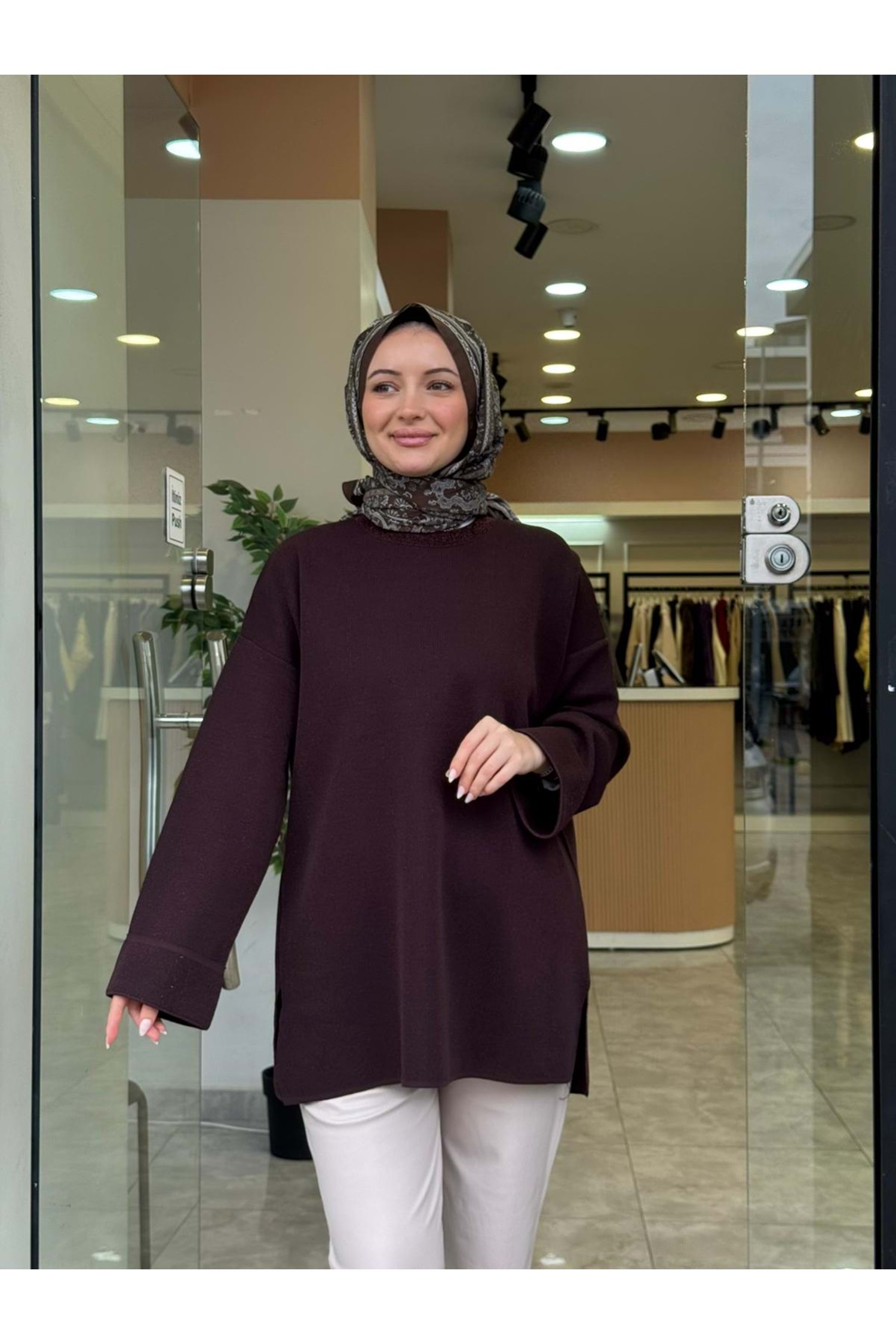 DÜZ SİM KAZAK - KAHVERENGİ - STD