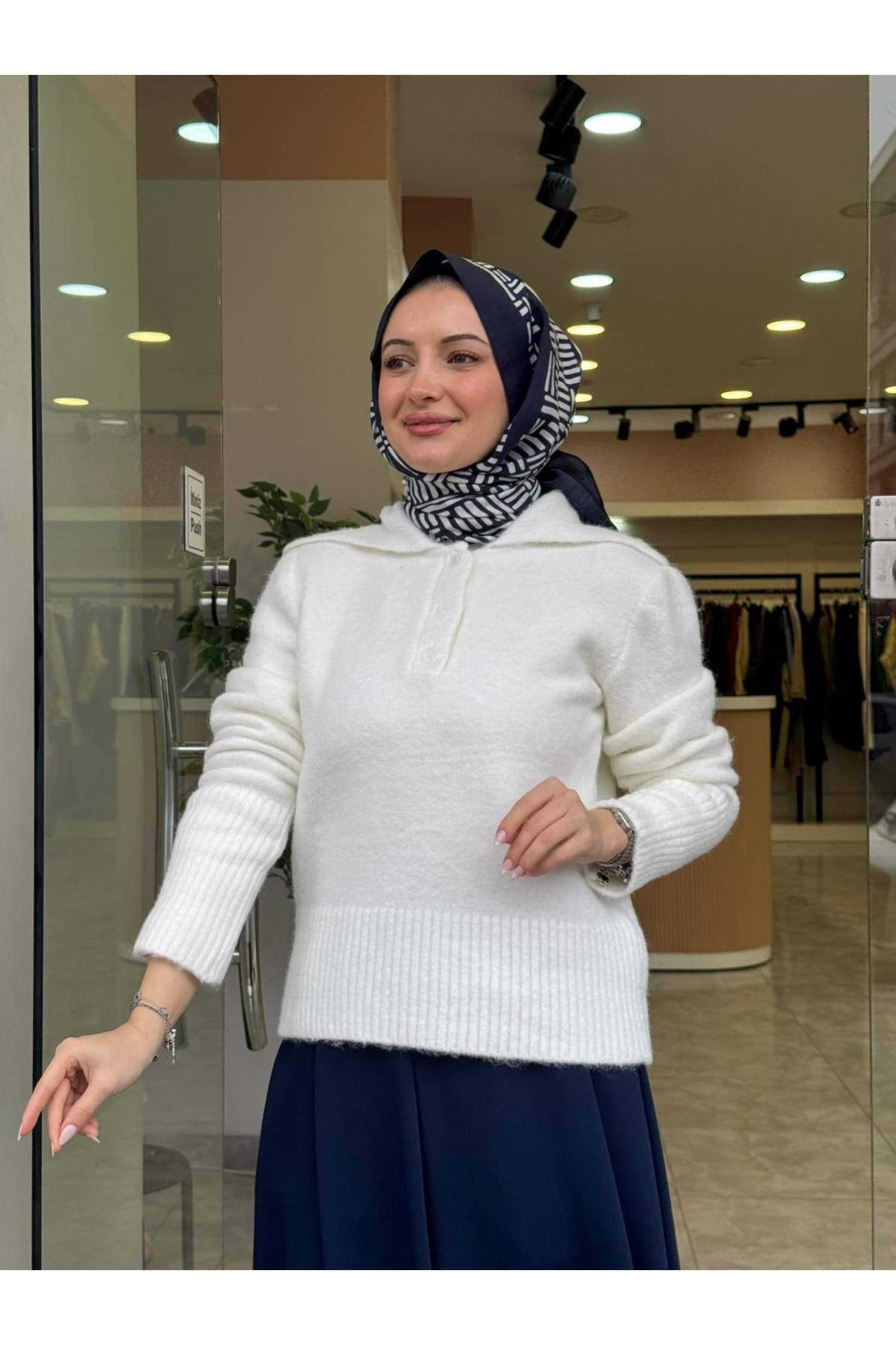 LİNEA POLO YAKA KAZAK - BEYAZ - STD