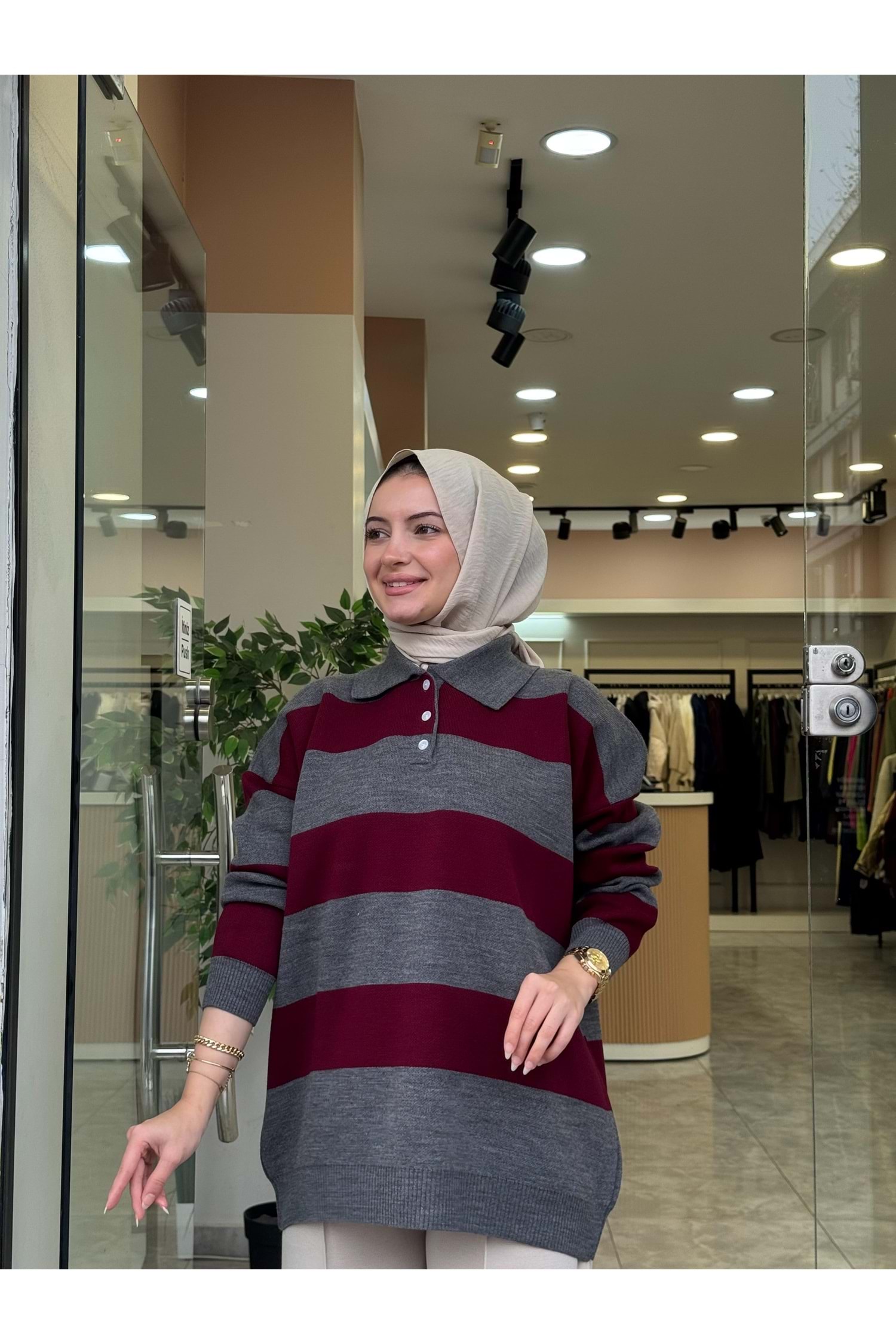 TRİKO KALIN ÇİZGİ KAZAK - BORDO - STD