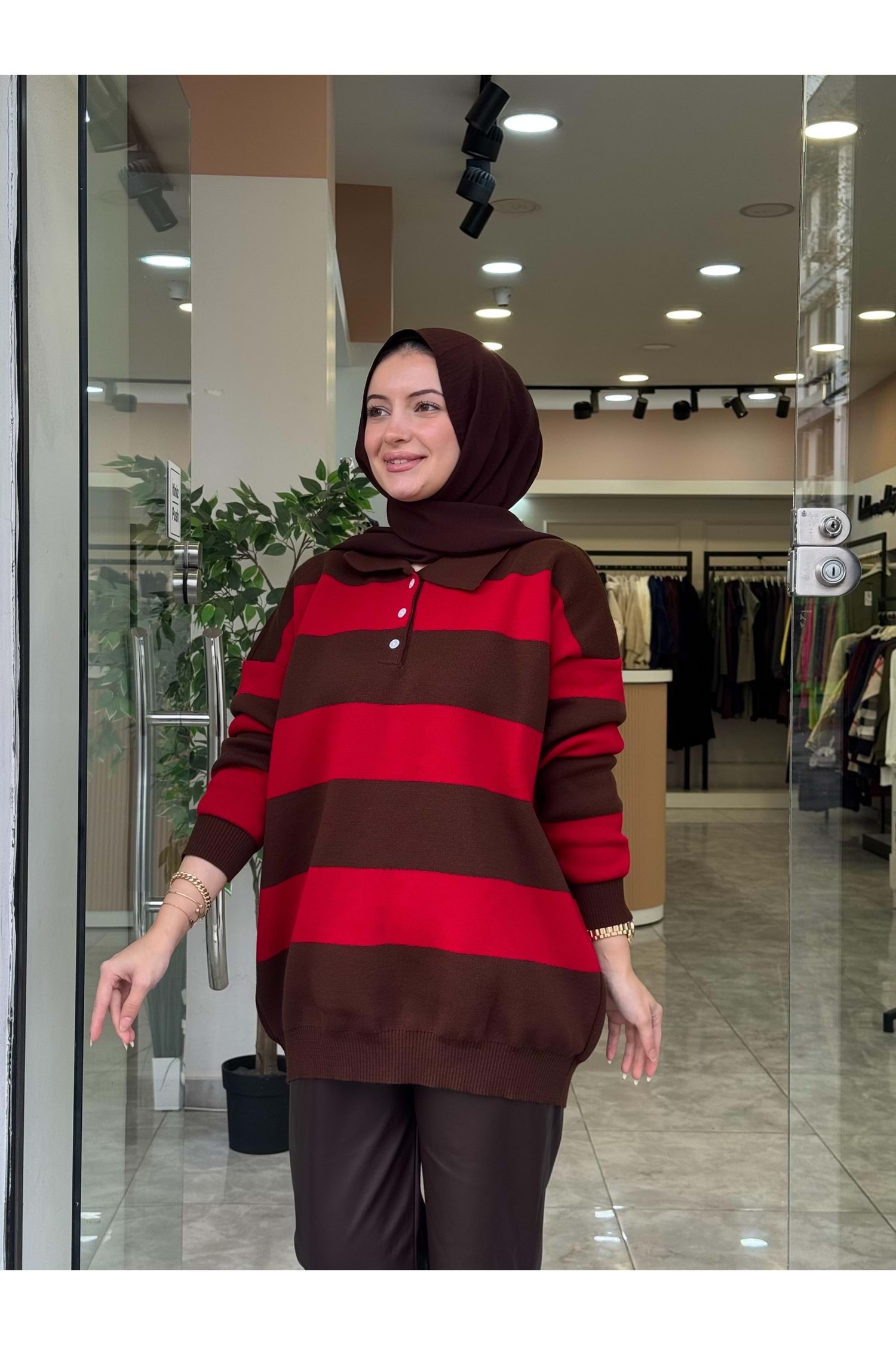 TRİKO KALIN ÇİZGİ KAZAK - KIRMIZI - STD