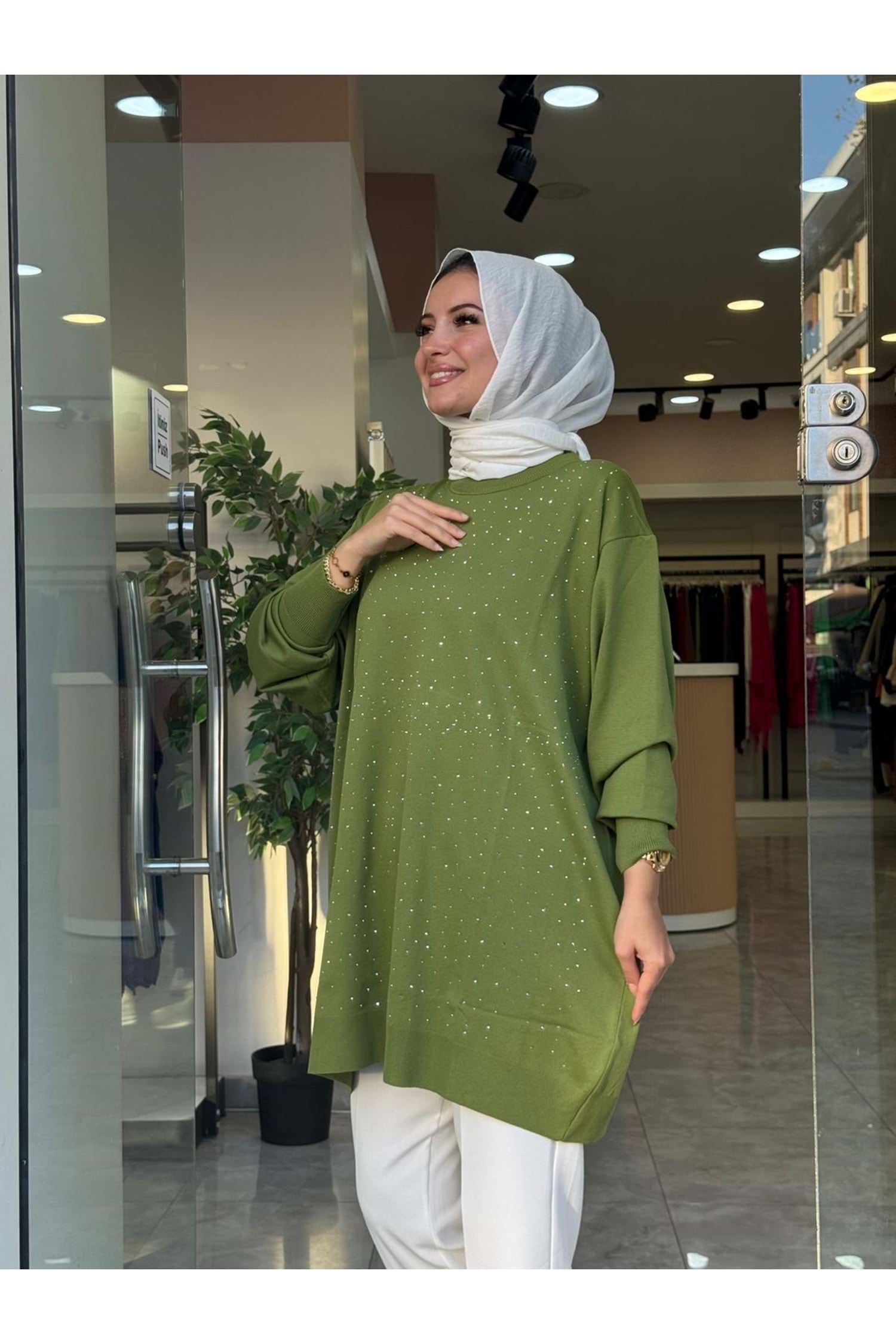PULLU TUNİK - YAĞ YEŞİLİ - STD