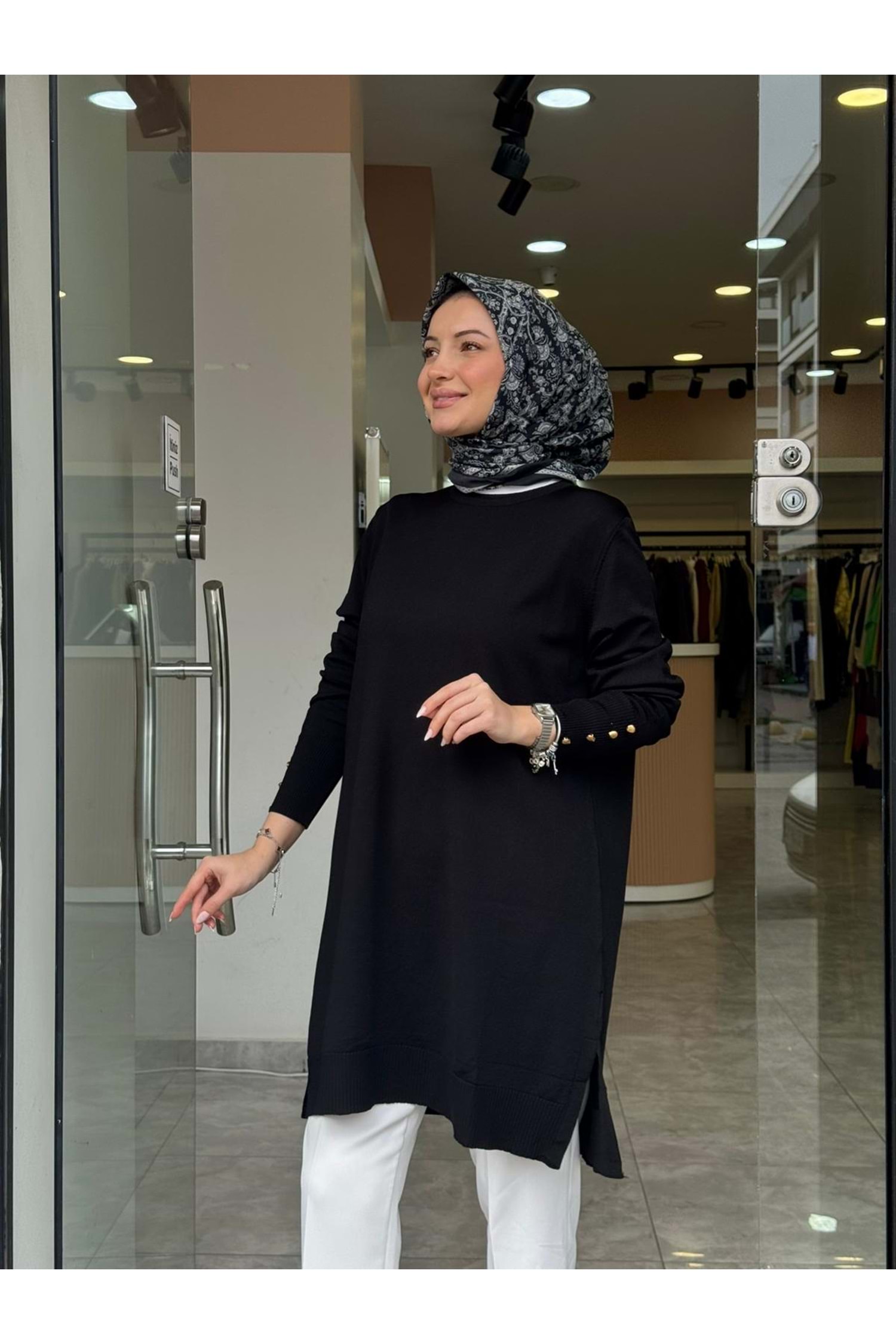UZUN MERSERİZE TUNİK - SİYAH - 1