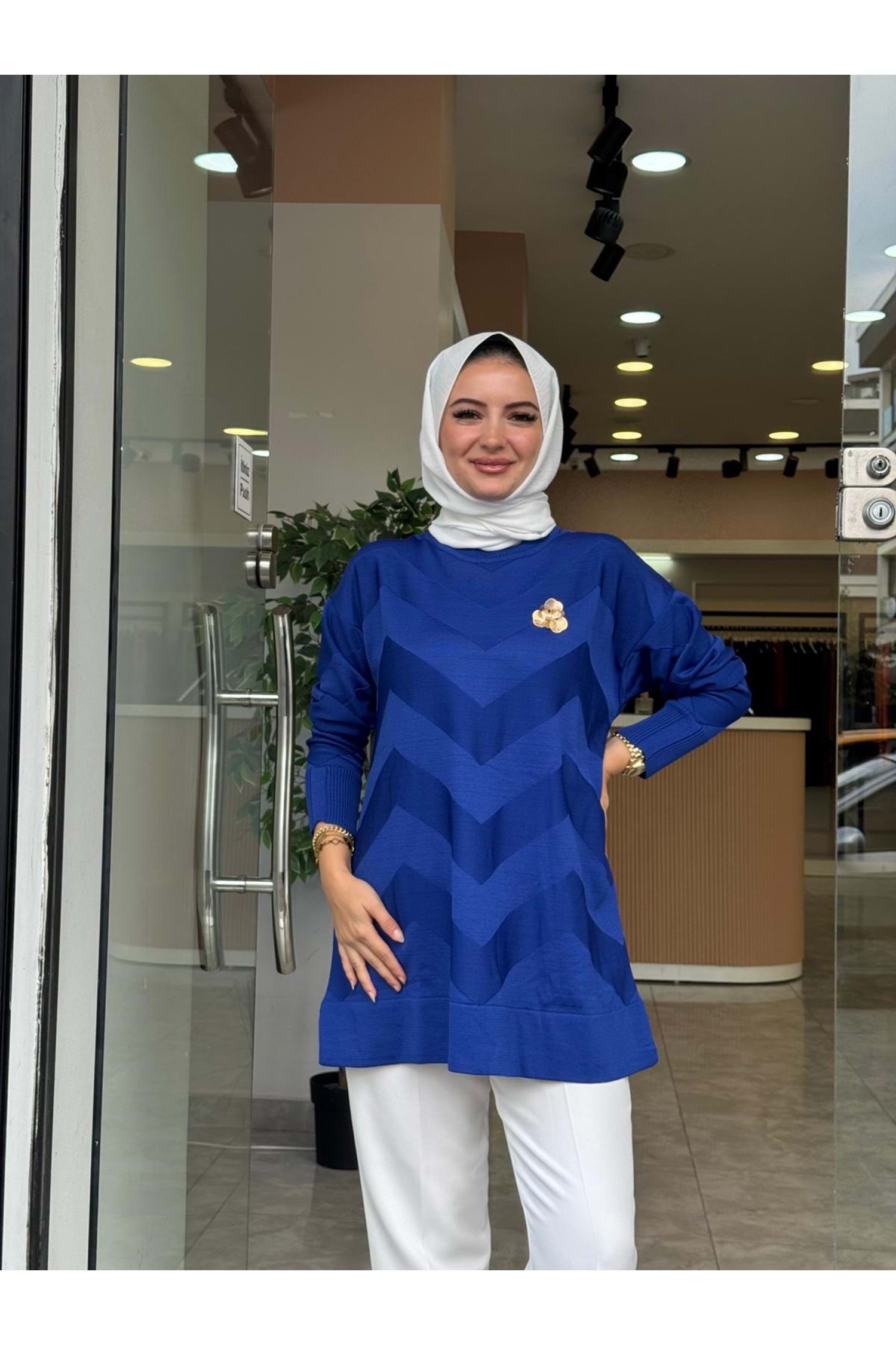 ZİKZAK TUNİK - SAKS MAVİSİ - STD
